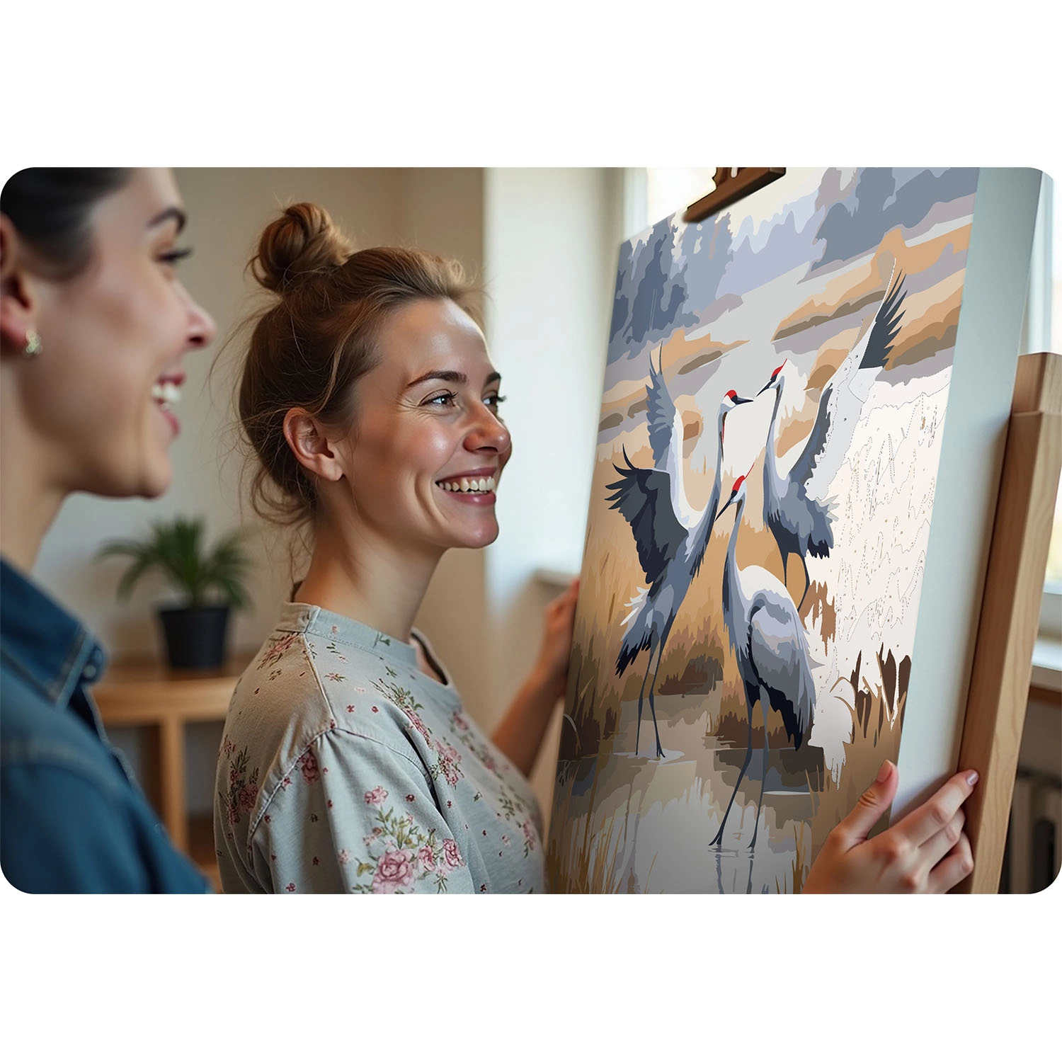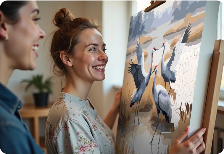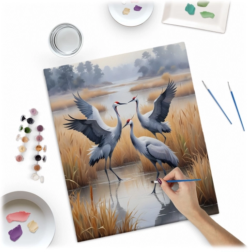 Kreatív kikapcsolódás mindenkinek. Az előnyomott, számozott vászon lépésről lépésre vezet, és a finom mintázatú, színes alap révén a festés gördülékeny még teljesen kezdőknek is. A telt, fedő akrilfestékek szép végeredményt adnak áttűnés nélkül, a darvak motívuma pedig elegáns, természetközeli hangulatot kölcsönöz a belső térnek.