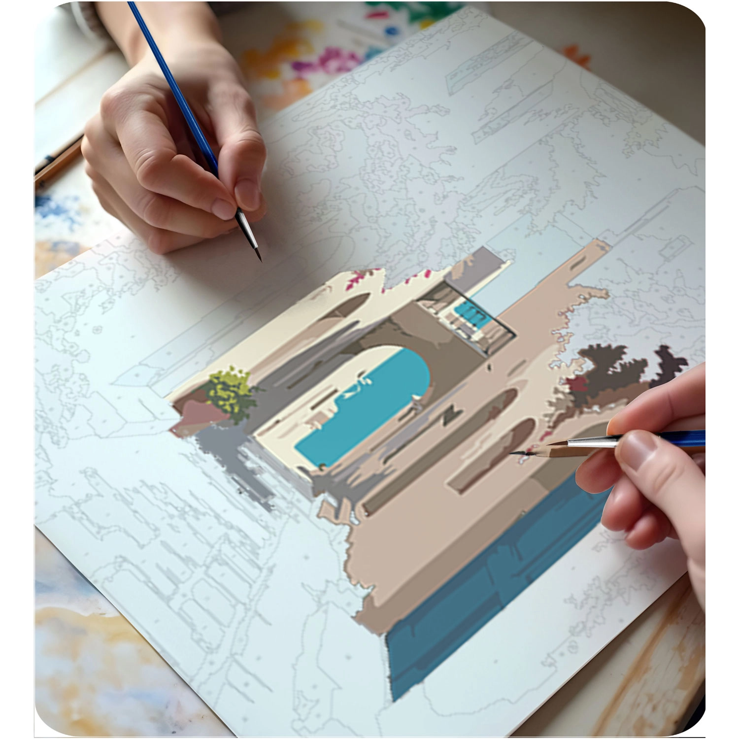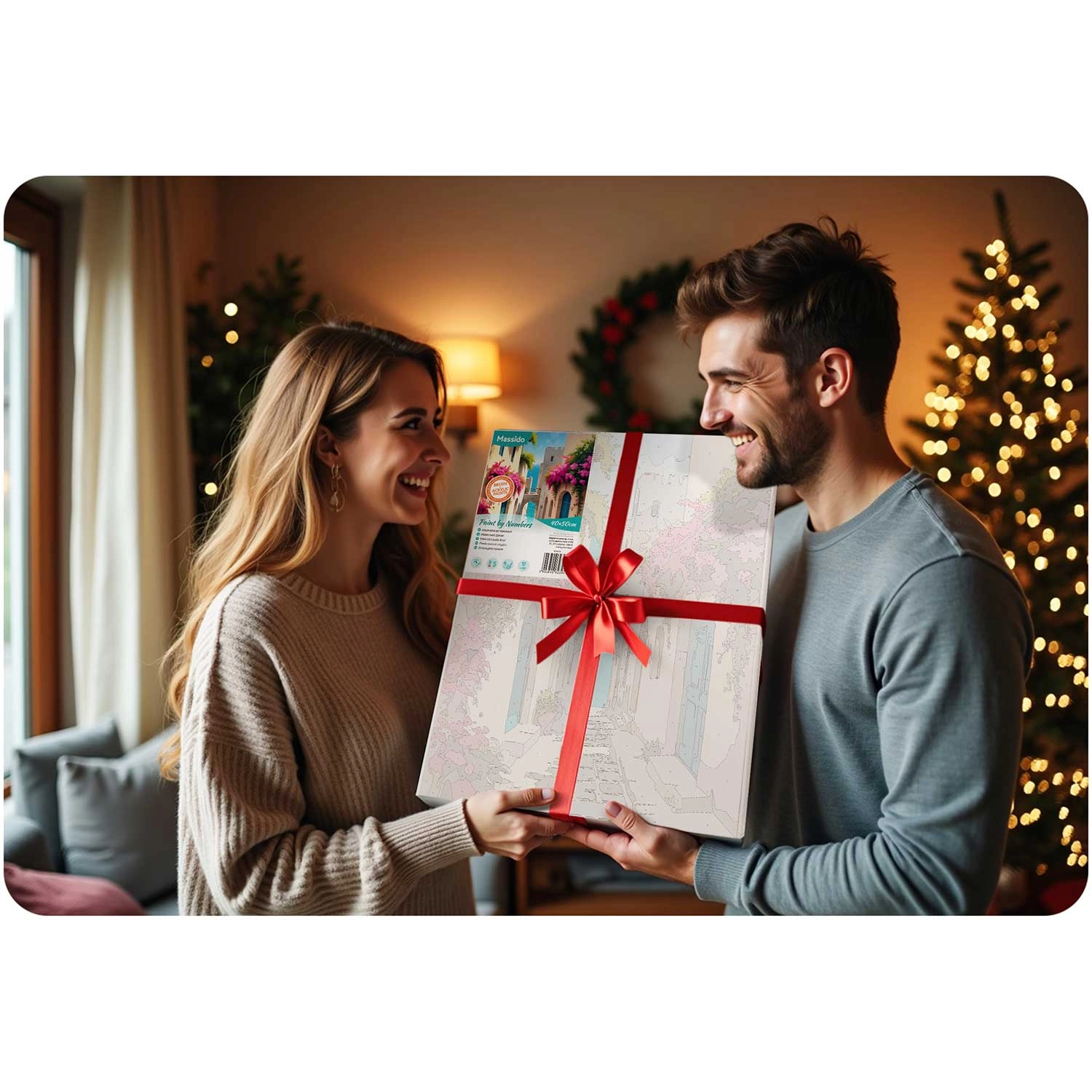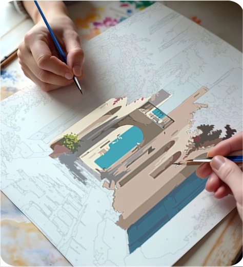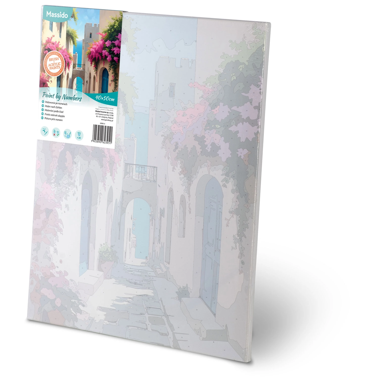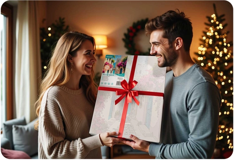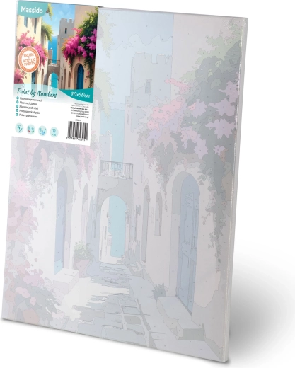 A vászon fa keretre van feszítve, finom aláfestéssel és számozott mezőkkel. Ennek köszönhetően a festés intuitív és tiszta folyamat, még teljesen kezdők számára is.