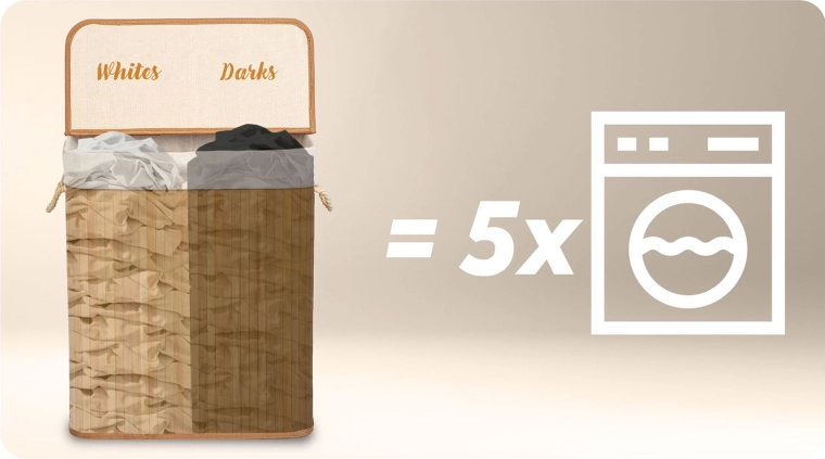 Beépített rekeszek egyértelmű Lights és Darks jelöléssel, amelyek felgyorsítják a válogatást és hatékonyabbá teszik a mosást. Nincs több kapkodás közvetlenül a mosógép indítása előtt.