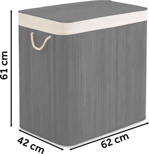 A tartós bambusz szerkezet fedéllel és kötélfogantyúkkal remekül illik a fürdőszobába, hálóba és gardróbba is.