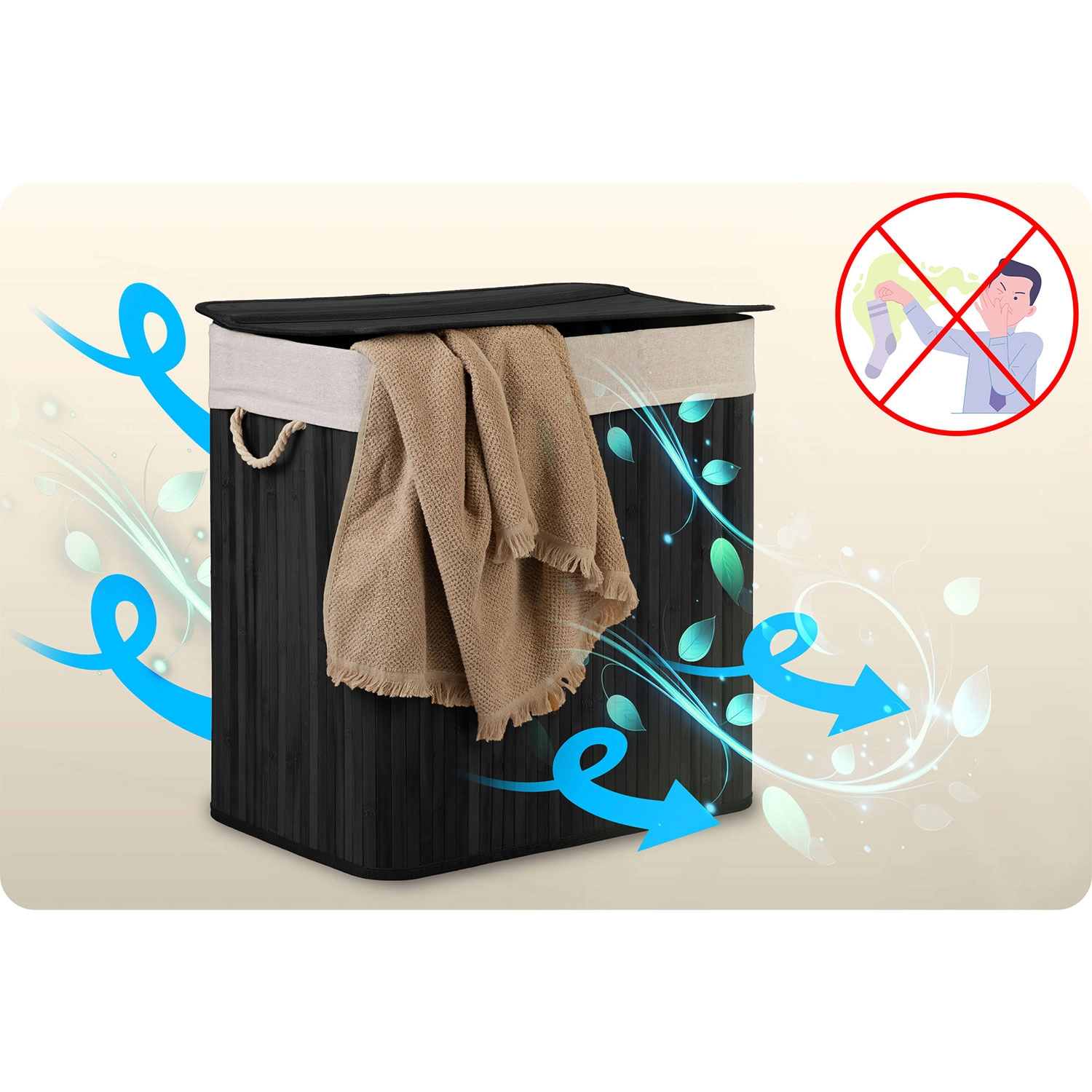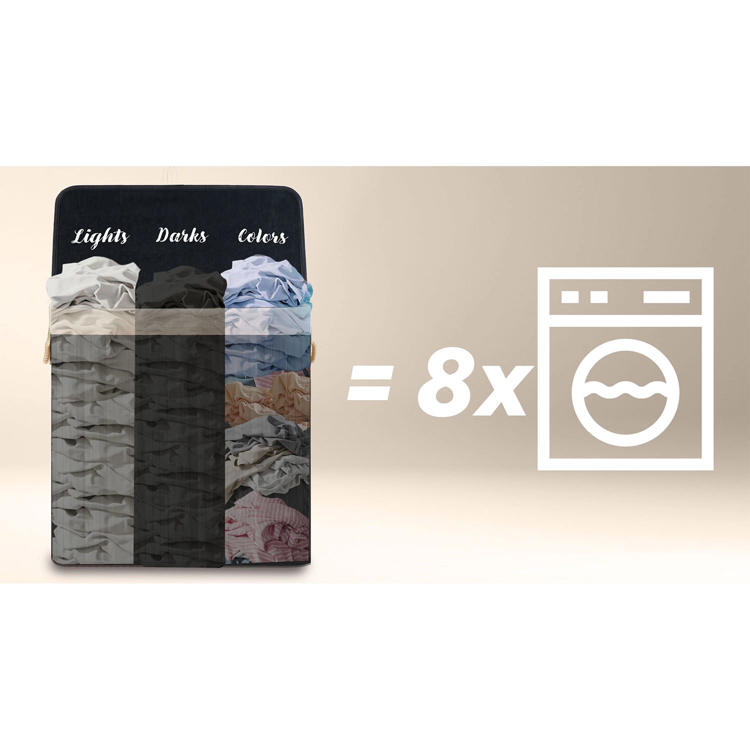 Fedezze fel a mindennapi szennyesválogatás praktikus megoldását. A nagyvonalú, 150 literes űrtartalom több mosásnyi ruhát is befogad, míg az áttekinthető Lights / Darks / Colors jelölések megszabadítanak a hosszas válogatástól mosás előtt. A természetes anyagok – bambusz és pamut – elősegítik a levegőáramlást és mérséklik a szagokat.