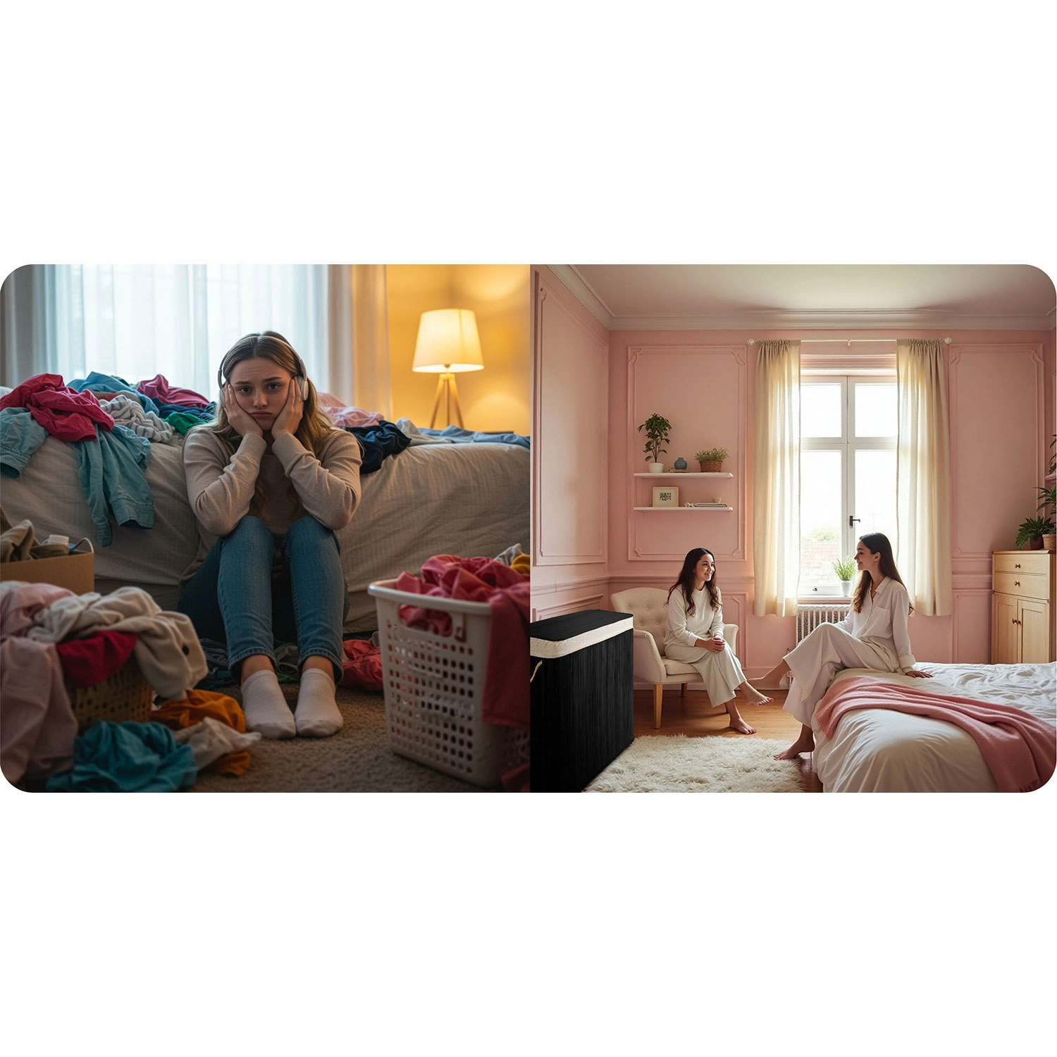 Az átgondolt részletek kényelmet biztosítanak minden használatkor: levehető fedél, erős kötélfogantyúk az egyszerű hordozáshoz, stabil, zárt alj és kivehető betét, amelyet megtelve egyszerűen kihúz, összeköt és a mosógéphez visz.