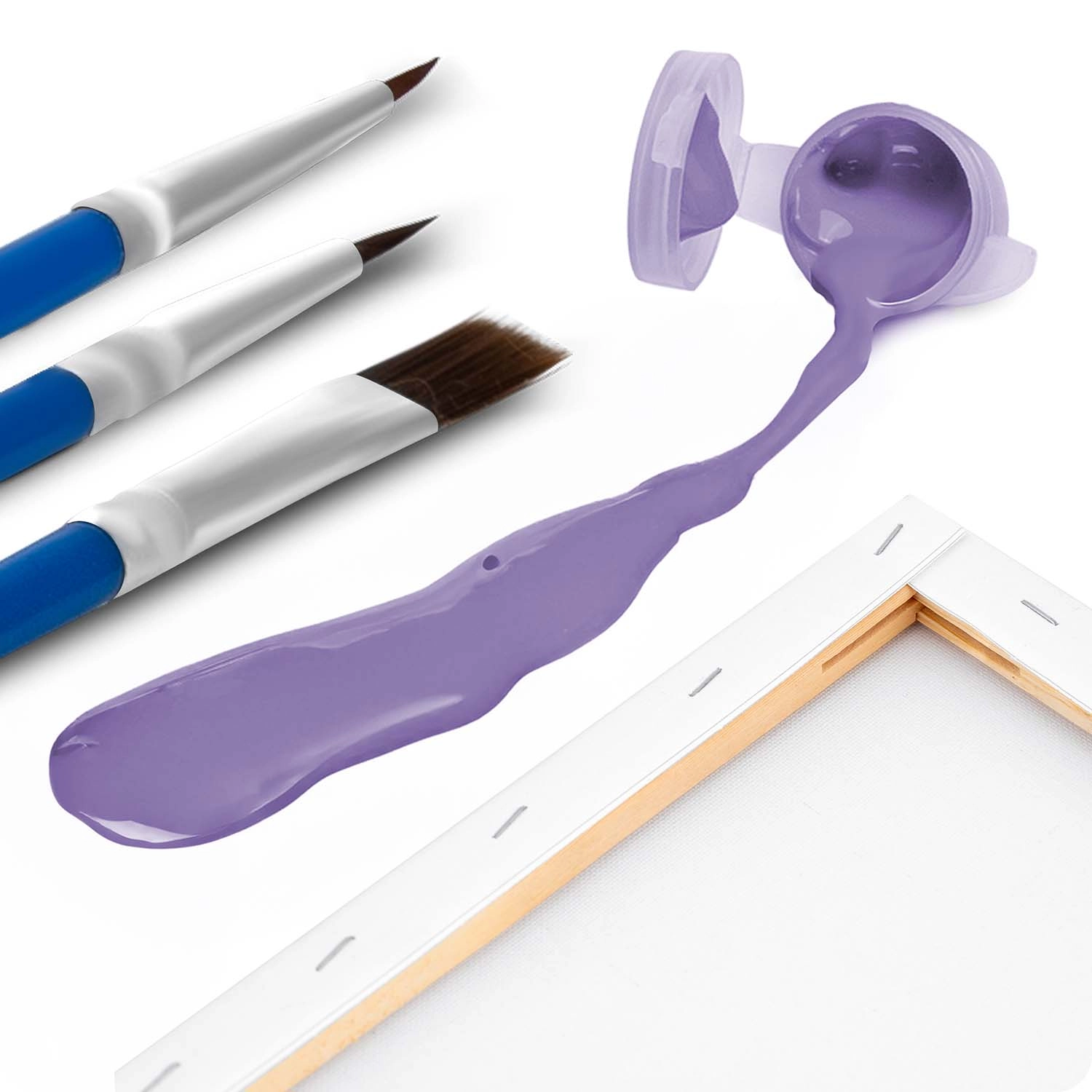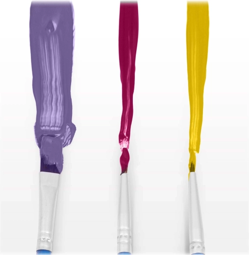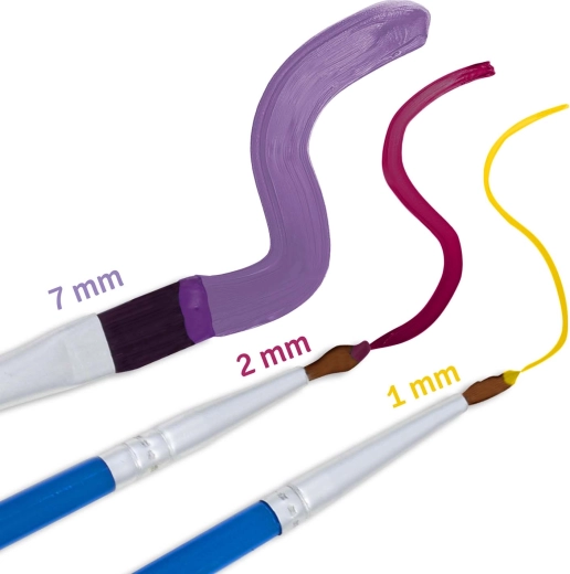 Három ecset (1 mm, 2 mm, 7 mm) a nagy felületekhez és az apró részletekhez, a fedő akrilfestékek hígítás nélkül is egyenletes felvitelt biztosítanak.
