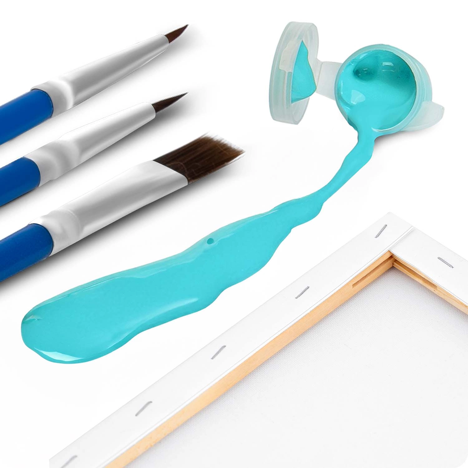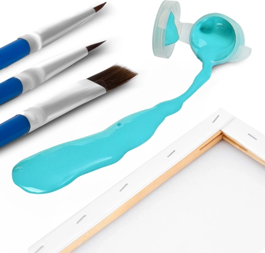 Előrenyomott vászon vakrámán, 30 fedő akrilfesték, 3 ecset és akasztók – csak nyissa ki, és már festhet, utánpótlás nélkül.