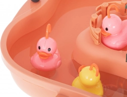 Változtassátok a kacsa-horgászatot vidám kihívássá! A készlet tartalmaz egy szigetes medencét, 5 kiskacsát, 2 horgászbotot és 2 merítőhálót, így a gyerekek élvezhetik a versengést és az önálló játékot is. A kellemes színeknek és a mozgó elemeknek köszönhetően a játék természetes módon fejleszti a megfigyelőképességet és az ügyességet.