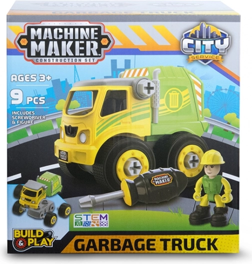 A Machine Maker CITY SERVICE sorozata valósághű munkagépeket kínál, amelyeket a gyerekek biztonságos csavarhúzóval maguk szerelhetnek össze és szedhetnek szét. Az alkatrészek a modellek között kombinálhatók, így egyedi gépek és új játékszcenáriók hozhatók létre.