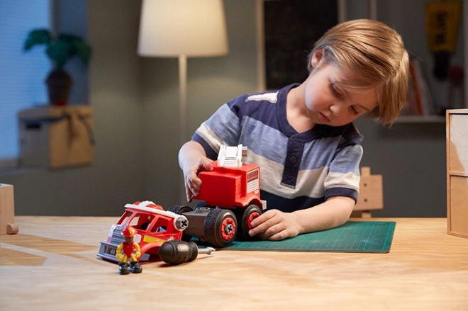 A CITY SERVICE sorozat piros tűzoltóautója valósághű játékélményt nyújt. A tűzoltó figurával és csavarhúzóval a gyerekek könnyedén összeszerelik a modellt, és indulhatnak a bevetésre.
