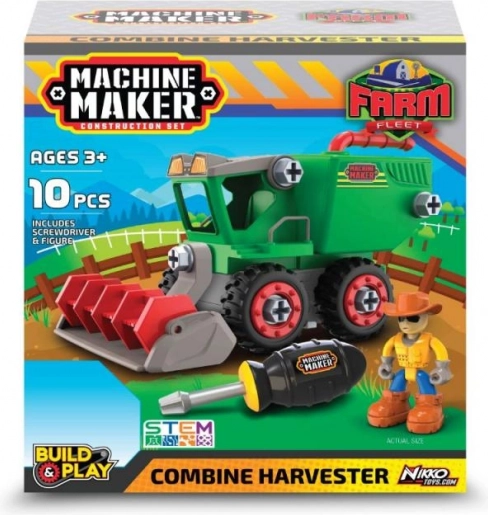 Két remek mezőgazdasági gépváltozat közül lehet választani (pl. traktor vagy kombájn). Minden készlet színes elemeket, működő csatlakozó csavarokat és egy kedves farmer figurát tartalmaz. A tartós műanyag kivitel ideális a mindennapos játékhoz otthon és útközben is.