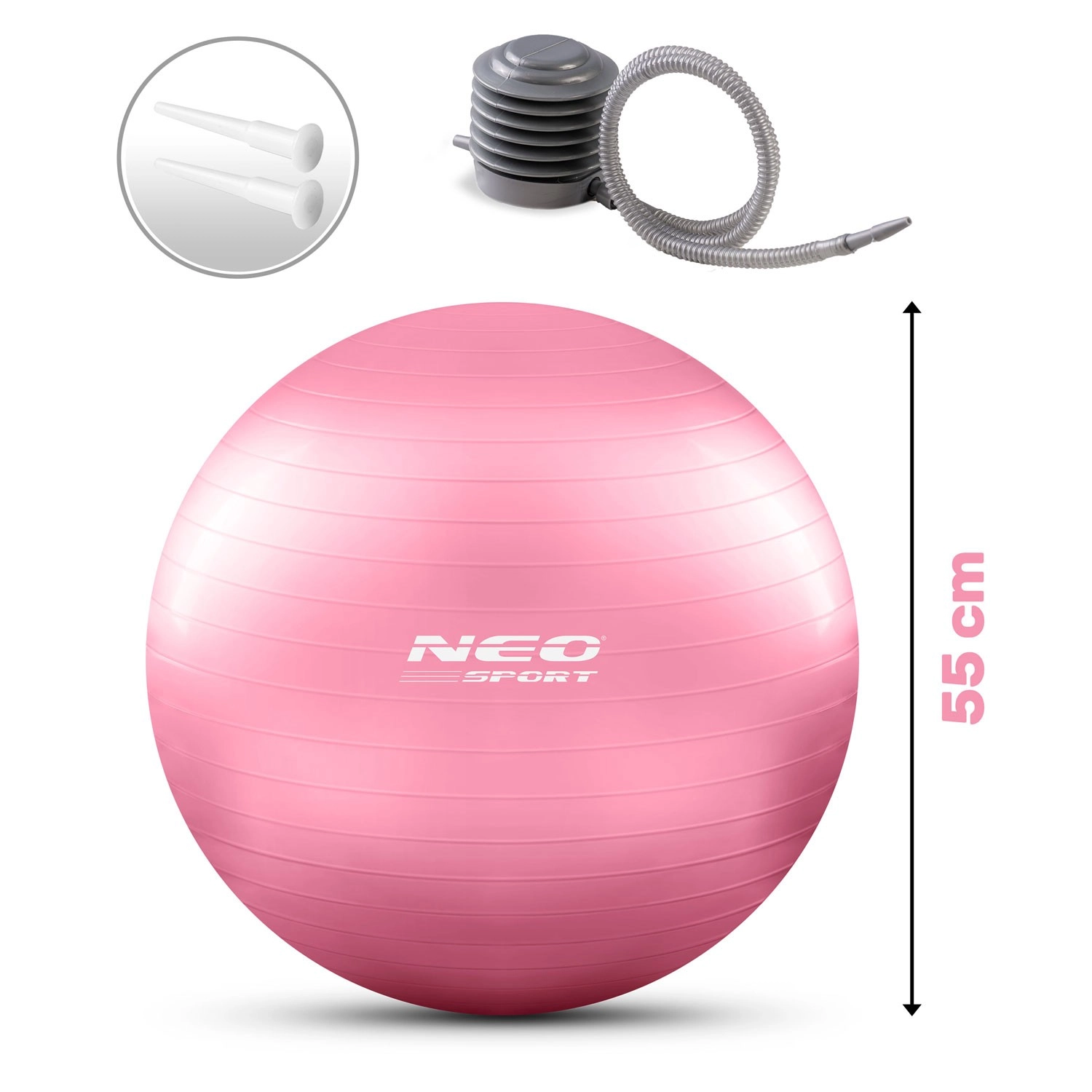 A rózsaszín NEO SPORT 55 cm gimnasztikai labda segít a törzsizomzat erősítésében, javítja az egyensúlyt és a mobilitást, valamint tehermentesíti a hátat hosszan tartó ülés közben. Az anti-burst biztonsági technológiának köszönhetően a labda repedés esetén lassan leereszt, így minimalizálja a sérülés kockázatát. A csúszásgátló, körkörös gyűrűkkel ellátott textúra biztos fogást és stabilitást nyújt a talajon.