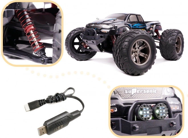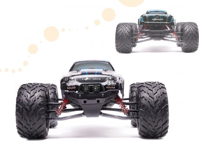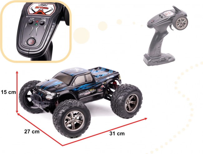 Élje át a gyorsaság és a terepjáró kaland izgalmát ezzel a lenyűgöző Monster Truck kel! Ez a nagy méretű, kék színű távirányítós autó maximális sebességgel és irányíthatósággal rendelkezik, hogy minden terepen gond nélkül mozoghasson.