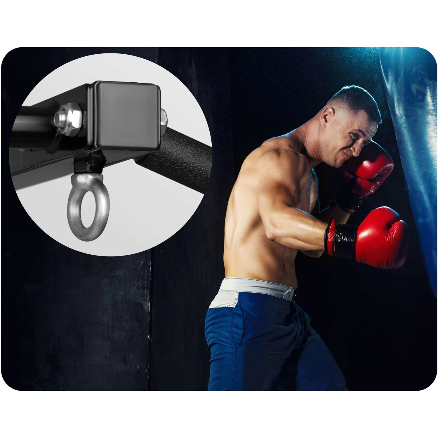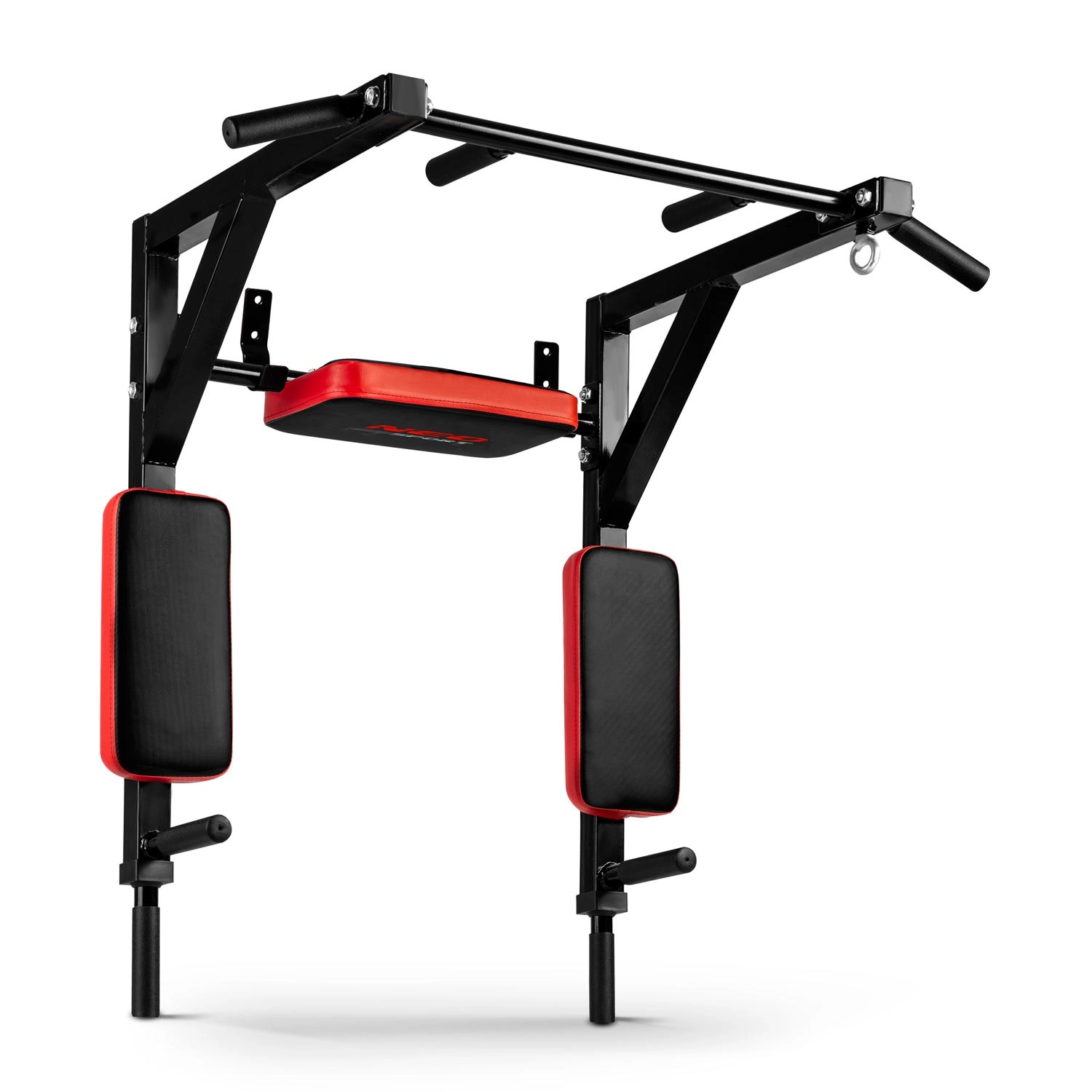 A praktikus 2 az 1-ben kialakításnak köszönhetően a rudat egyszerűen megfordíthatod, így hatékonyan válthatsz a különböző izomcsoportok gyakorlatai között. A 150 kg-os nagy teherbírás és a 38 × 38 mm-es profilcsövek tartósságot garantálnak intenzív használat mellett is. A csomagban komplett rögzítőkészletet találsz a masszív fali szereléshez, valamint egy praktikus akasztót bokszzsák felakasztásához.