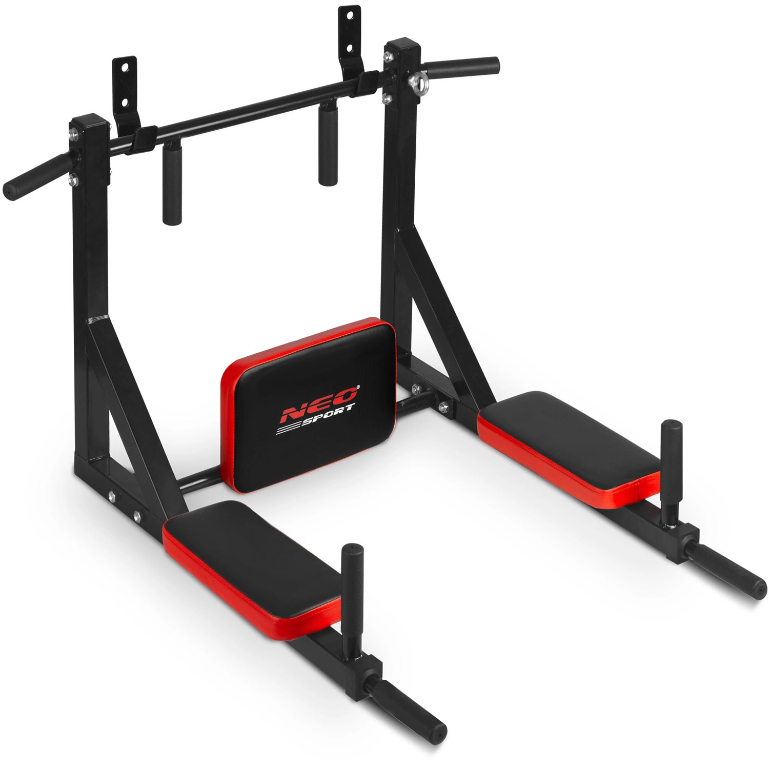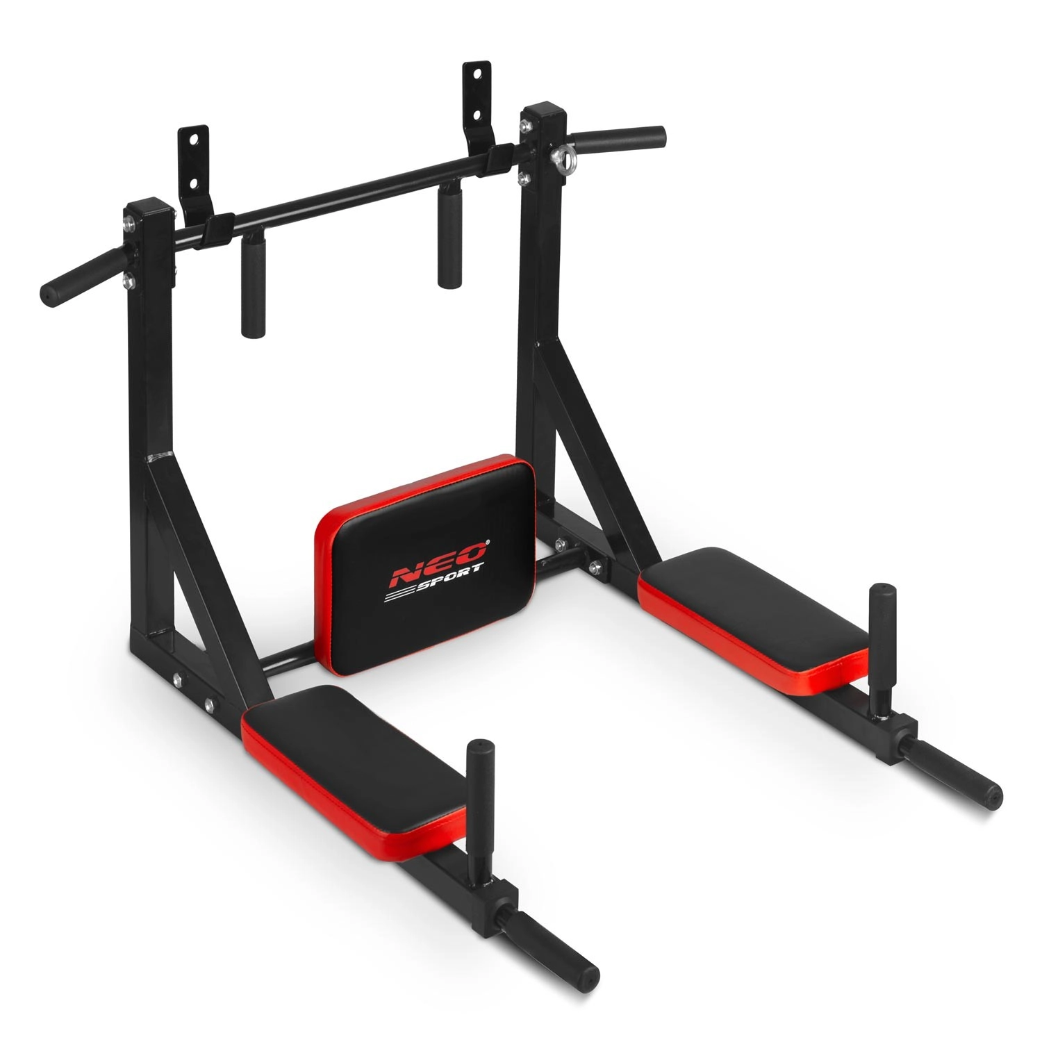 A NEO SPORT NS-319 fali húzódzkodó támasztékkal univerzális megoldás az otthoni erőedzéshez. A masszív acél váz a kényelmesen párnázott kartámaszokkal és háttámasszal stabilitást és komfortot ad olyan gyakorlatoknál, mint a húzódzkodás, tolódzkodás, térd- és lábemelés. Nyolc csúszásmentes fogás biztosítja a biztonságos és változatos edzést.