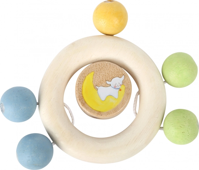 A fa csörgő Lotta ideális játék a legkisebbeknek, amely fejleszti a motoros képességeket és a hallást a gyöngyökkel, amelyek csörögnek a karikán.