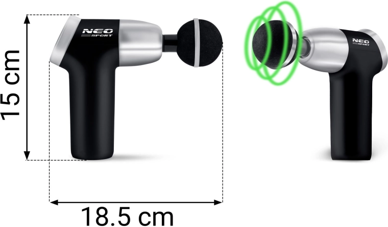 A NEO Sport NS-500 megbízható perkusziós masszázspisztoly, amely mélyen a izomszálakba hatol, segít a bemerevedett területek oldásában, a gyorsabb regenerációban és a bemelegítésben nyújtás előtt. A 8 fejnek köszönhetően könnyen megválasztható az ideális nyomástípus és kezelési felület – a nagy, széles izomcsoportoktól a precíz pontmasszázsig.