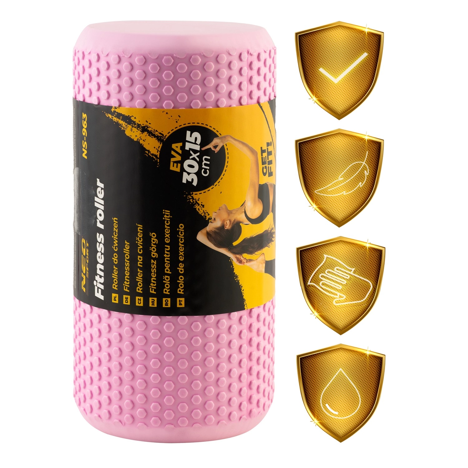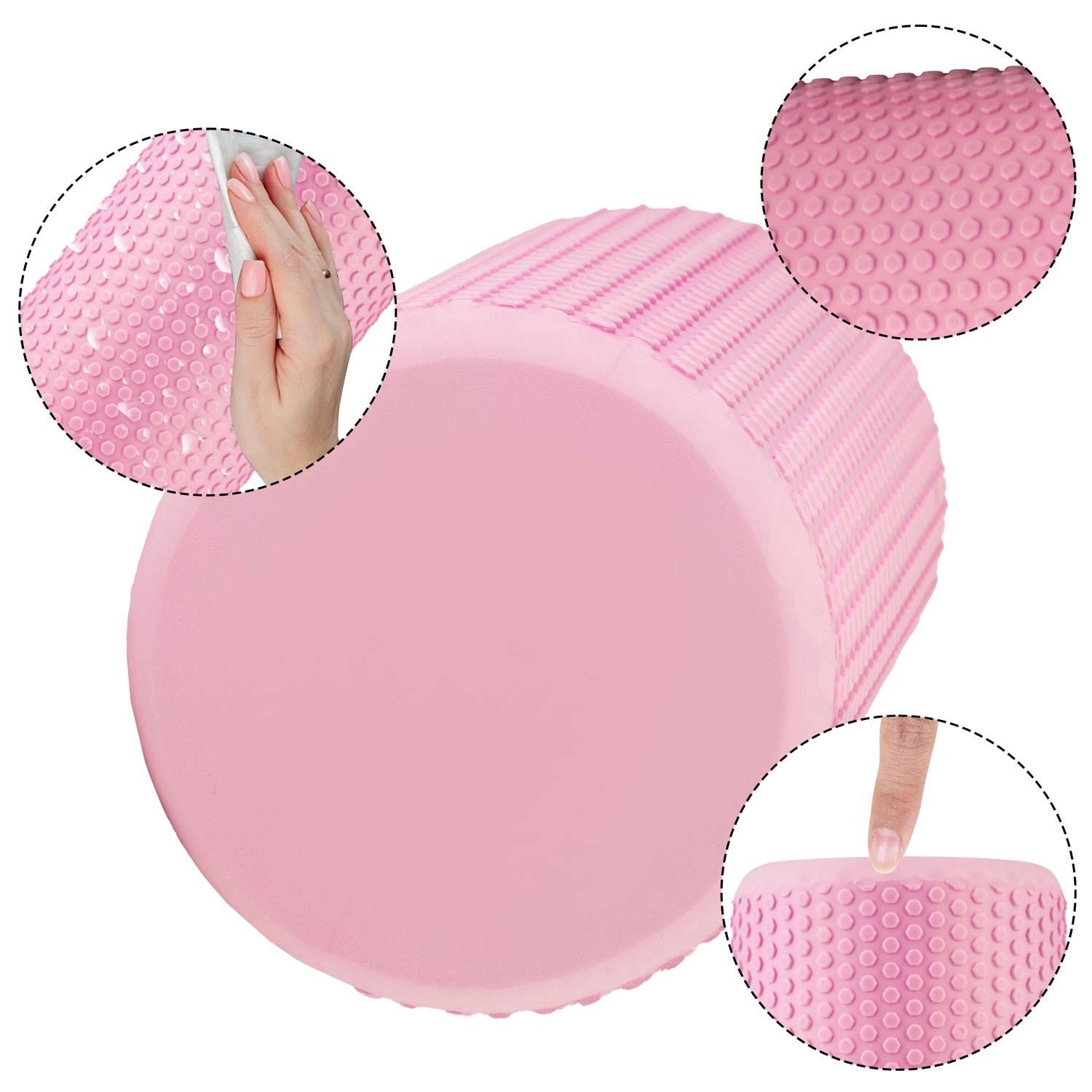 A rózsaszín EVA hab masszázshenger hatékony önmasszázsra és myofasciális oldásra készült edzés után vagy egy megterhelő napot követően. Szilárd, mégis kellemesen kemény kialakítása segít javítani a hajlékonyságot, csökkenteni az izomfeszülést és felgyorsítani a regenerációt. A pontokkal ellátott csúszásmentes textúrának köszönhetően stabilan a helyén marad, és célzott nyomást biztosít az izmokra.