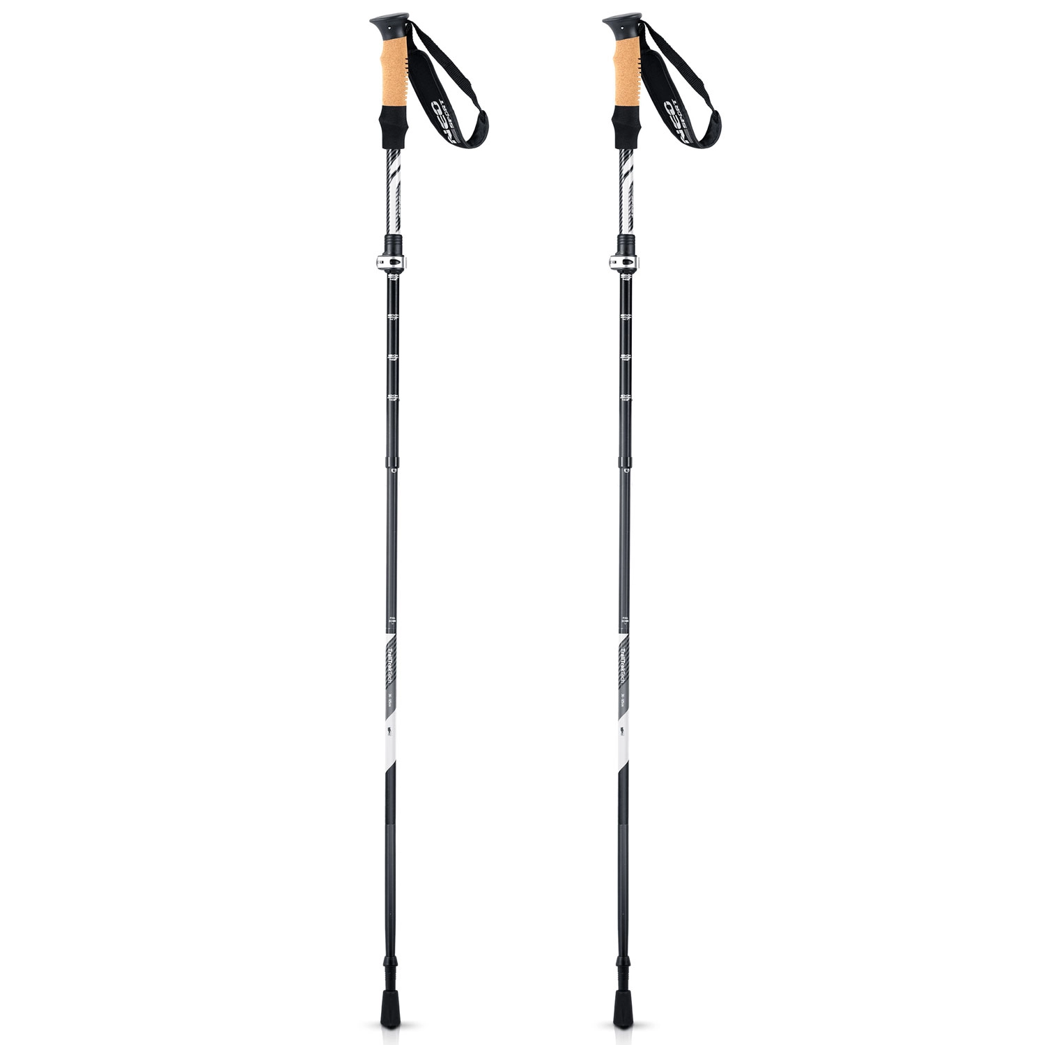 A karos zárak villámgyorsan lehetővé teszik a 85–130 cm hossz beállítását és a botok biztonságos rögzítését. Összecsukva 45 cm-re könnyedén elférnek hátizsákban vagy kézipoggyászban.
