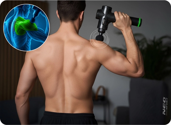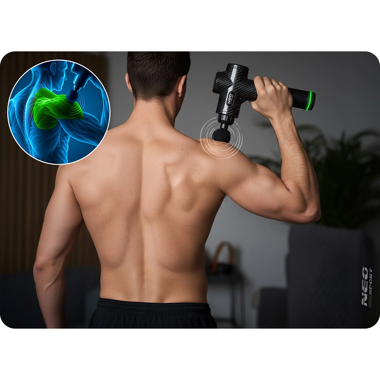 A vezeték nélküli kialakítás, az ergonomikus markolat és a 30 intenzitási szint segít lerövidíteni a regenerációt, ellazítani a merev izmokat és javítani a mobilitást a terhelés után.