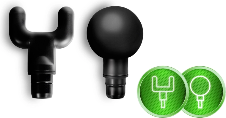 U‑fej a gerinc melletti területre, gömbfej nagyobb izomcsoportokhoz, lapos fej sokoldalú lazításhoz, kúpos fej intenzív pontmasszázshoz, hűsítő gélfej, lapátfej csontképletek mentén, ujjfej precíz nyomáshoz, dupla gombafej a vérkeringés fokozására és puha gombafej az érzékeny részekhez.