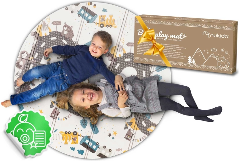 Ez a nagy méretű, összecsukható NUKIDO habszőnyeg 1 cm-es vastagságával megbízható ütéscsillapítást biztosít a kemény padlón, valamint hőszigetelést a hideg csempétől vagy padlótól. A kétoldalas nyomat fejleszti az érzékelést és a fantáziát: az egyik oldal magas kontrasztot, számokat és ikonokat kínál a korai tanuláshoz, a másik útmintát az autós játékokhoz és történetmeséléshez.