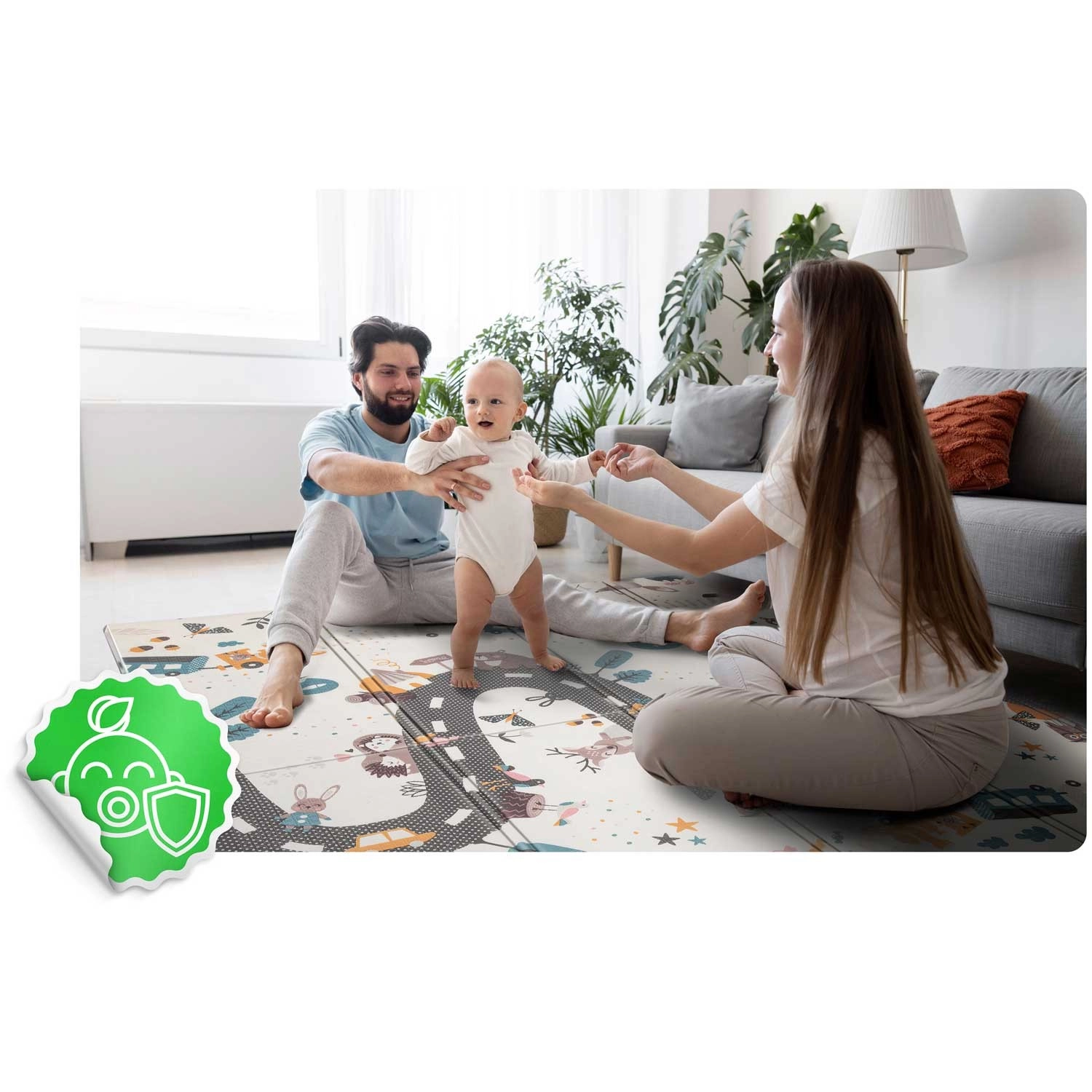 Ideális játékhoz, kúszáshoz, szülőkkel végzett tornához, piknikhez és családi tevékenységekhez otthon és a szabadban is. Időtálló színei illeszkednek bármely enteriőrhöz, és a szőnyeg elegánsan kiválthatja a gyerekszoba szőnyegét.