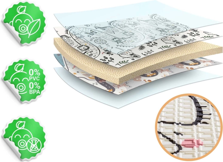 - Biztonságos anyag: XPE BPA-, PVC-, ftalát- és formamidmentesen, CE, EN71-1, EN71-2, EN71-3 tanúsítványokkal.