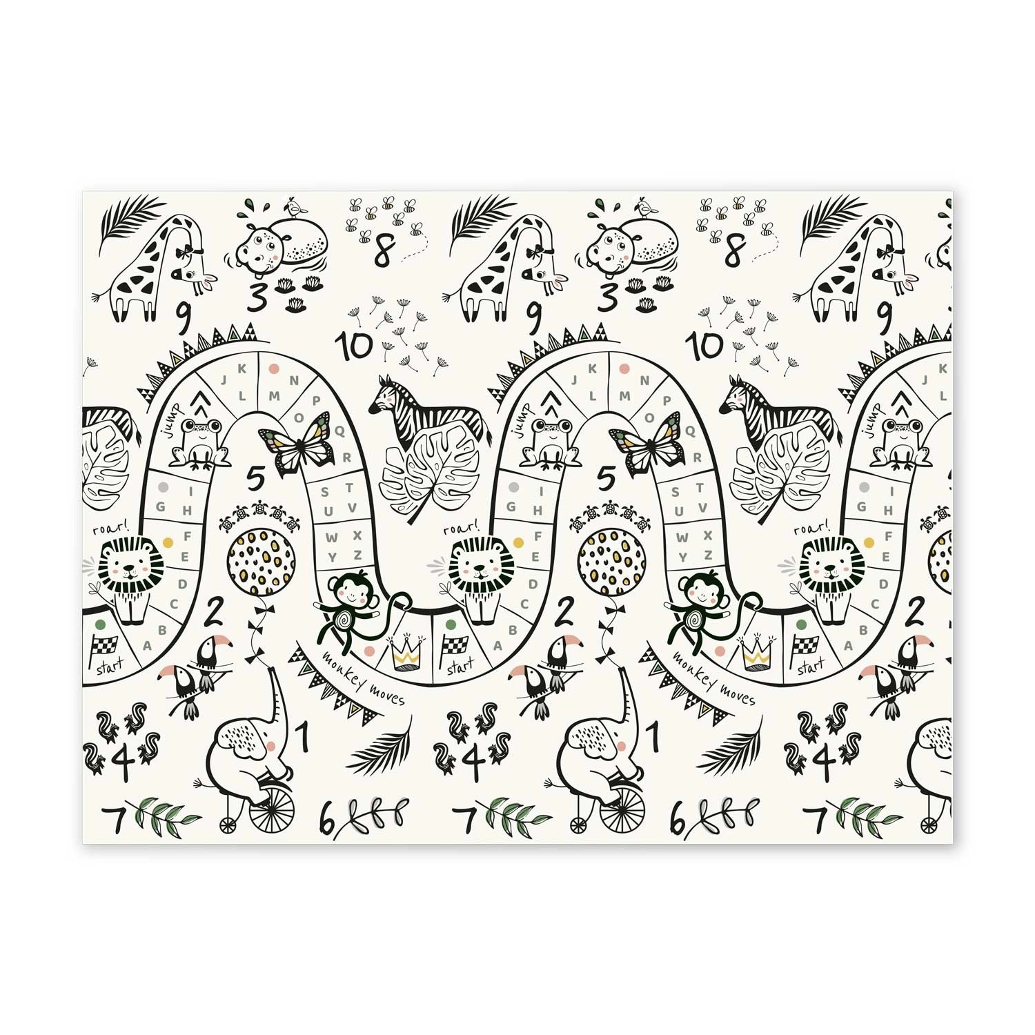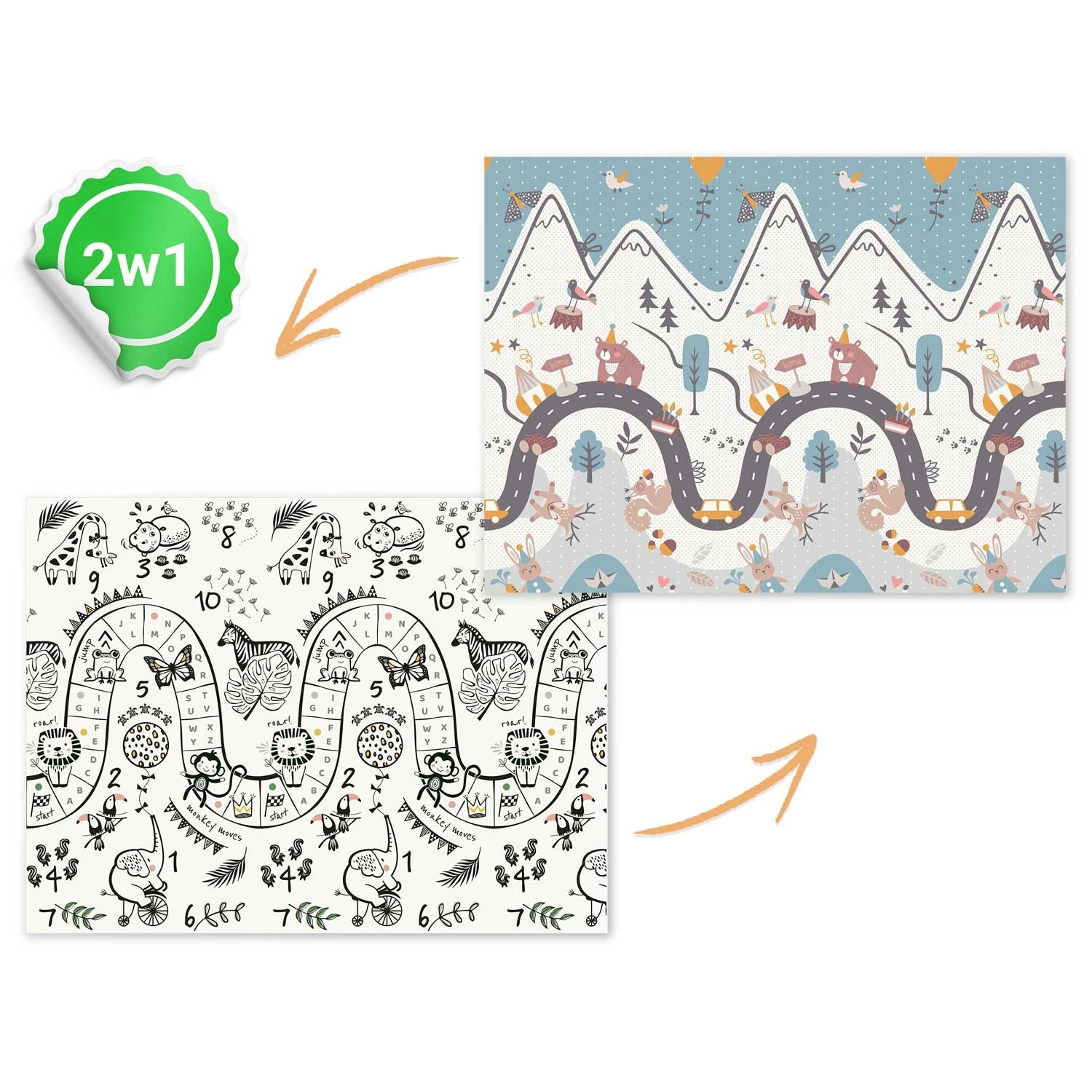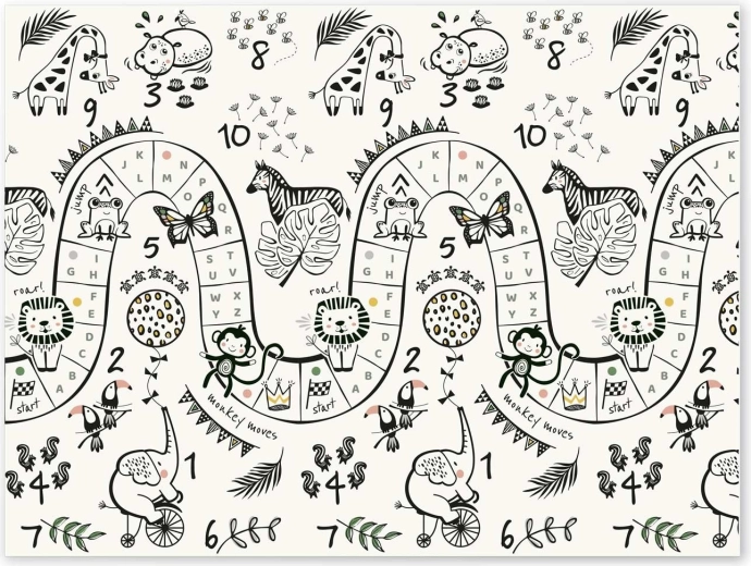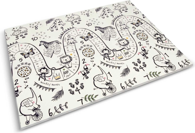 Az Iparművészeti Akadémiáról érkező tervező átgondolt mintái támogatják a finom- és nagymozgások fejlődését, és játékos formában ösztönzik a tanulást és a mozgást. A szőnyeg vízálló és mosható felülettel rendelkezik, finom domború textúrával a biztos lépésekhez és a könnyű karbantartáshoz.