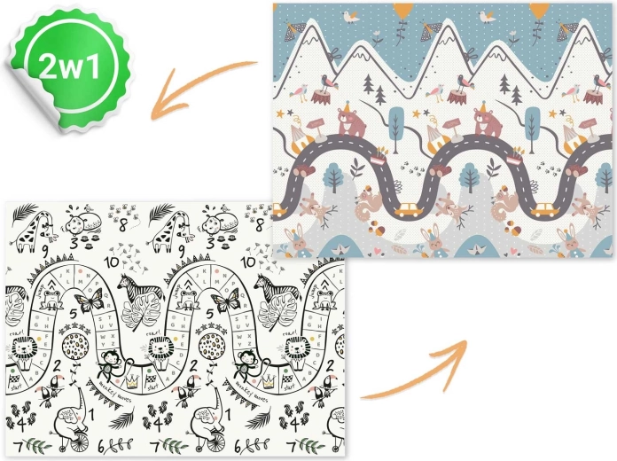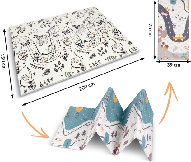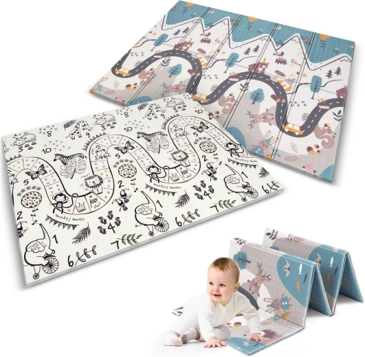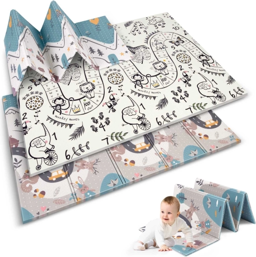 A Nukido összecsukható gyerek játszószőnyeg 200 × 150 × 1 cm méretben ideális a biztonságos játékhoz, mászáshoz és az első lépésekhez. Kétoldalas designnal, 1 cm vastag XPE habnak köszönhető ütéscsillapítással, csúszásgátló felülettel és könnyű tisztíthatósággal rendelkezik. BPA-, PVC-, ftalát- és formamidmentes, megfelel az EN71 szabványnak és CE tanúsítvánnyal bír.