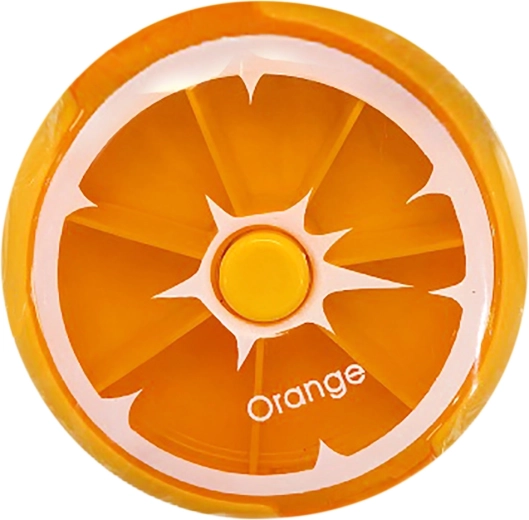Nincs több elfelejtett tabletta. Ez a kerek gyógyszeradagoló vonzó narancs mintával egyszerű és gyors gyógyszerelosztást kínál. Ideális mindennapi használatra, utazáshoz és munkába is.