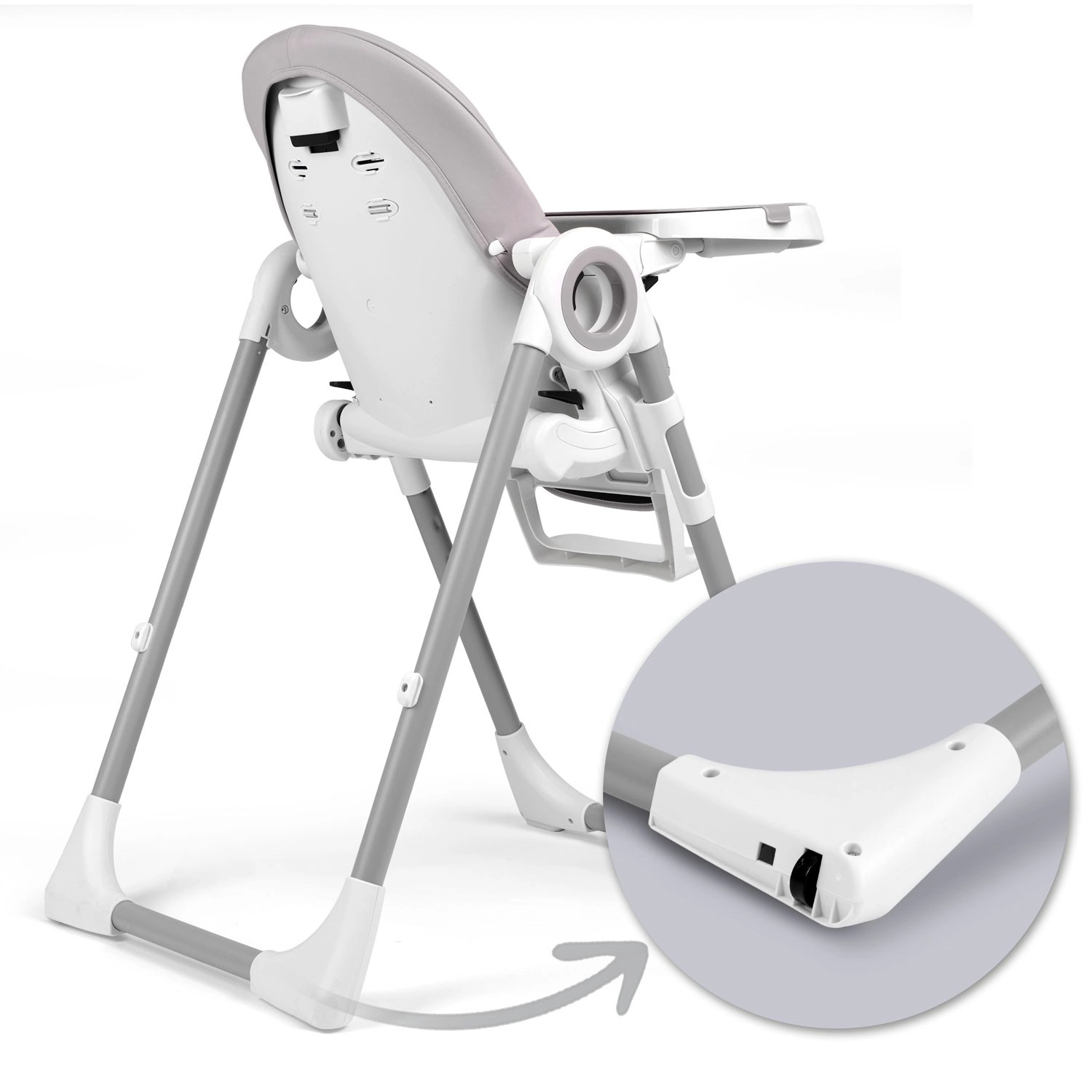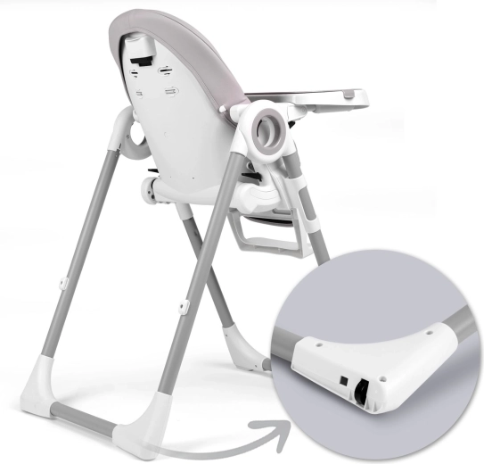 A stabil fémváz csúszásgátló elemekkel, az 5 pontos biztonsági öv és az EN 14988 tanúsítvány minden használatnál nyugalmat biztosít. A praktikus hátsó kerekek megkönnyítik a lakáson belüli áthelyezést, a kompakt összecsukás pedig helyet takarít meg, amikor épp nincs rá szükség.