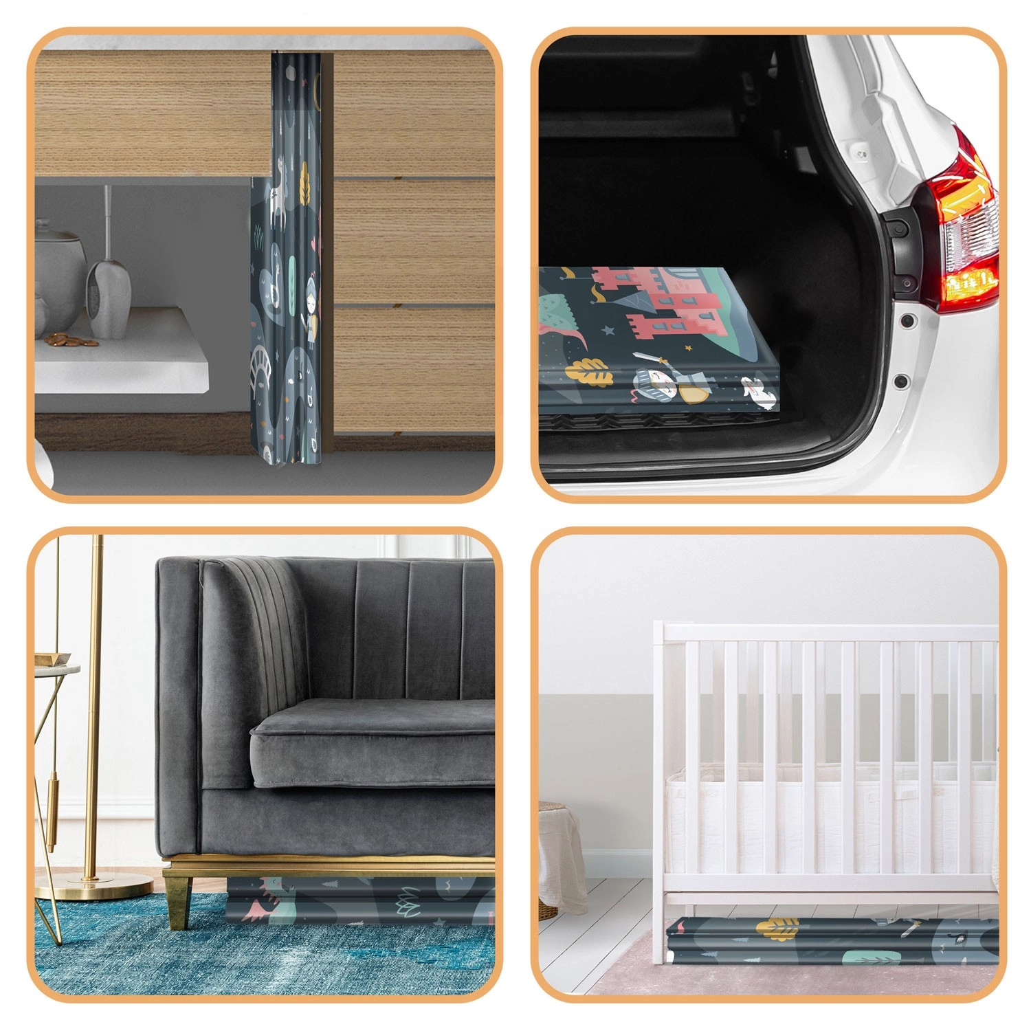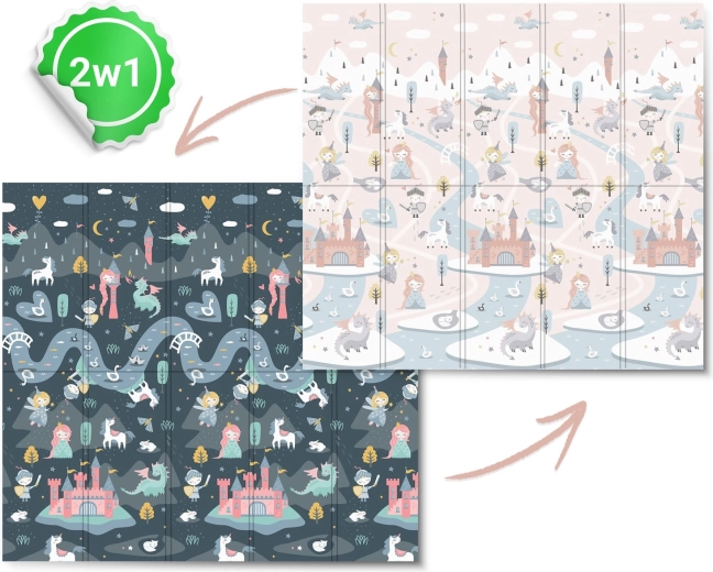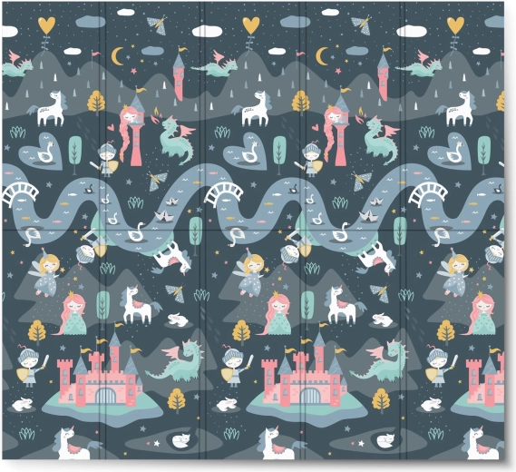 Két stílusos oldal – finom pasztell motívumok és markánsabb, sötétebb mesés grafika – fejleszti a színérzékelést és a fantáziát, miközben bármely enteriőrbe illeszkedik.