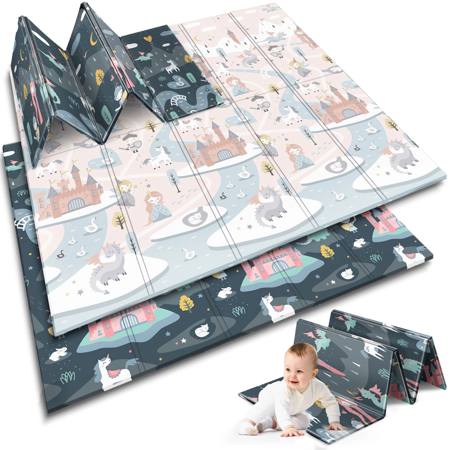 A NUKIDO összecsukható játszószőnyeg prémium, szagtalan XPE habból készült, puha, csúszásgátló és higiénikus felületet teremt a totyogóknak és az óvodásoknak. A 1 cm vastagság hatékonyan elnyeli az ütéseket, véd a kemény padlótól és hőszigetelést nyújt. A kétoldalas nyomat két stílusos változatot kínál – finom pasztell motívumokat és sötétebb mesés dizájnt –, hogy a szőnyeg illeszkedjen a belső térhez és hosszabb ideig lekösse a gyerekeket.