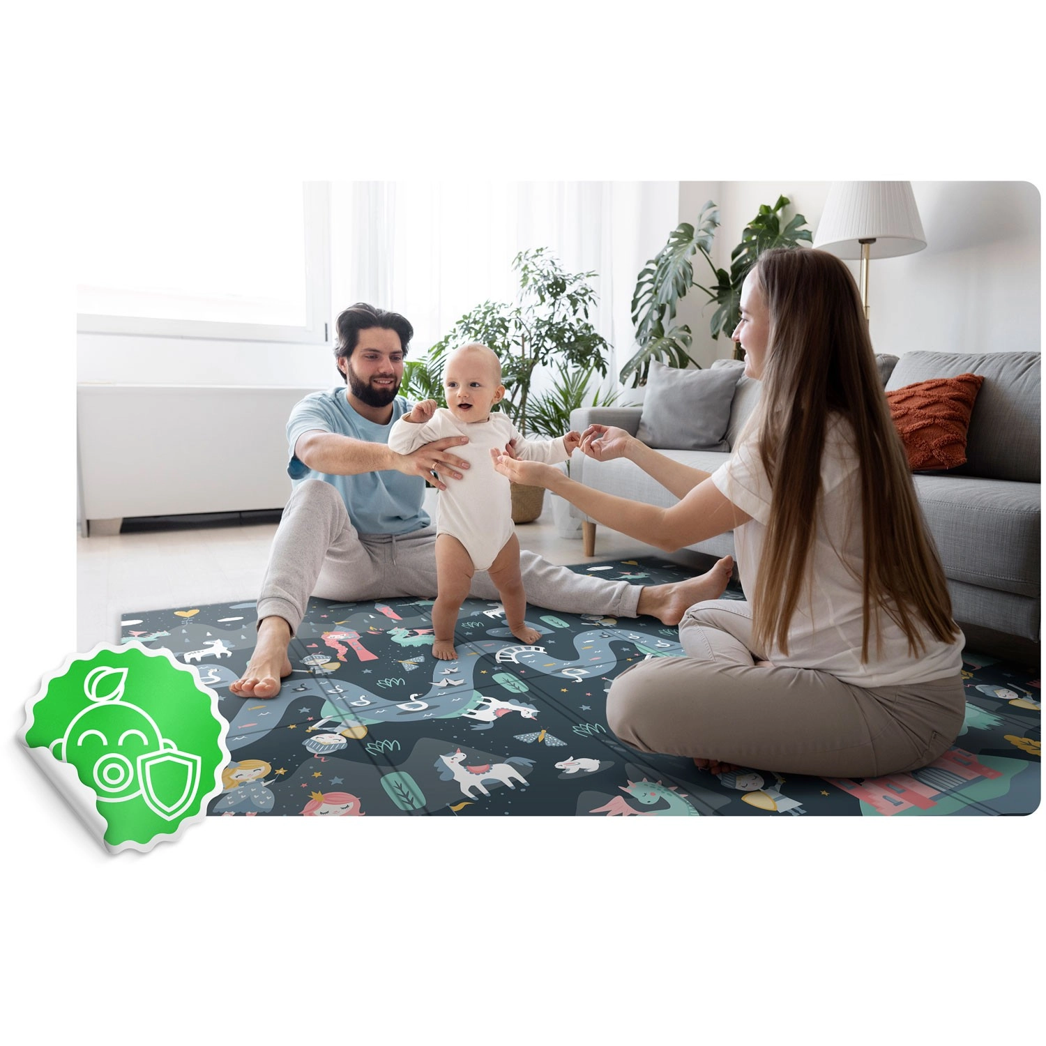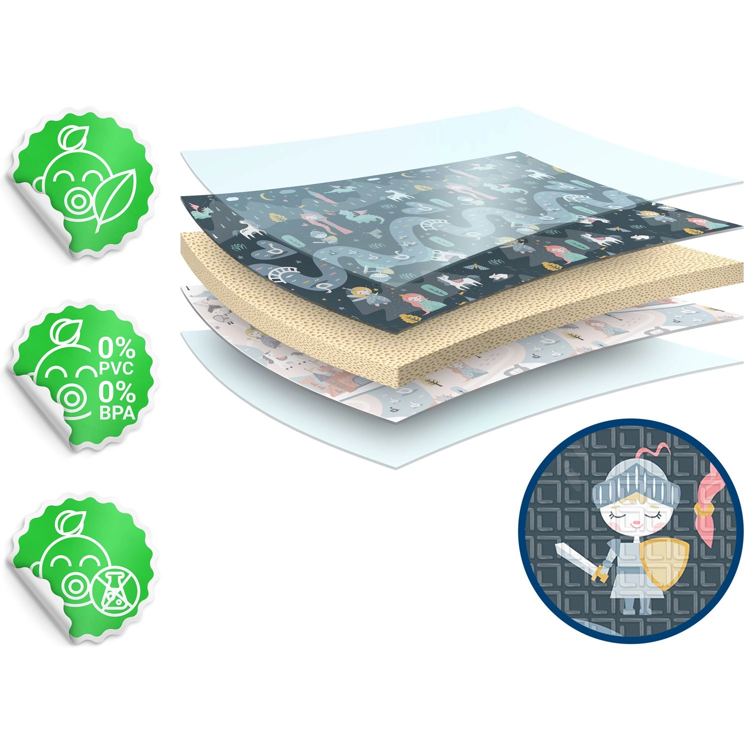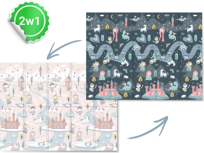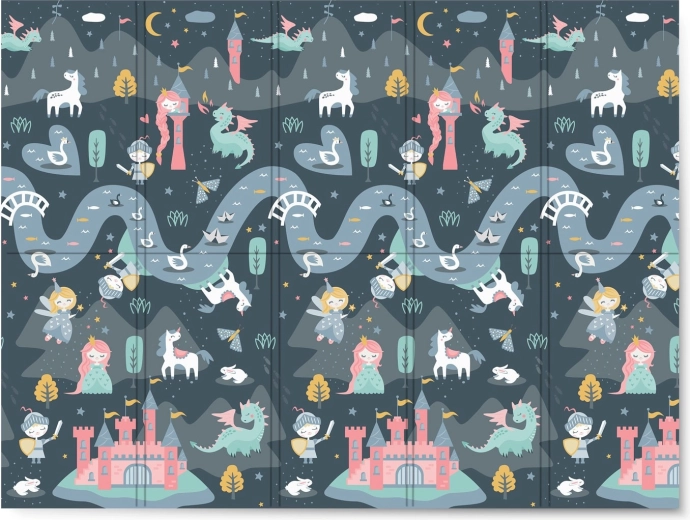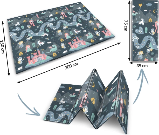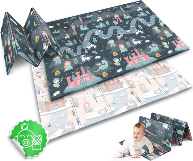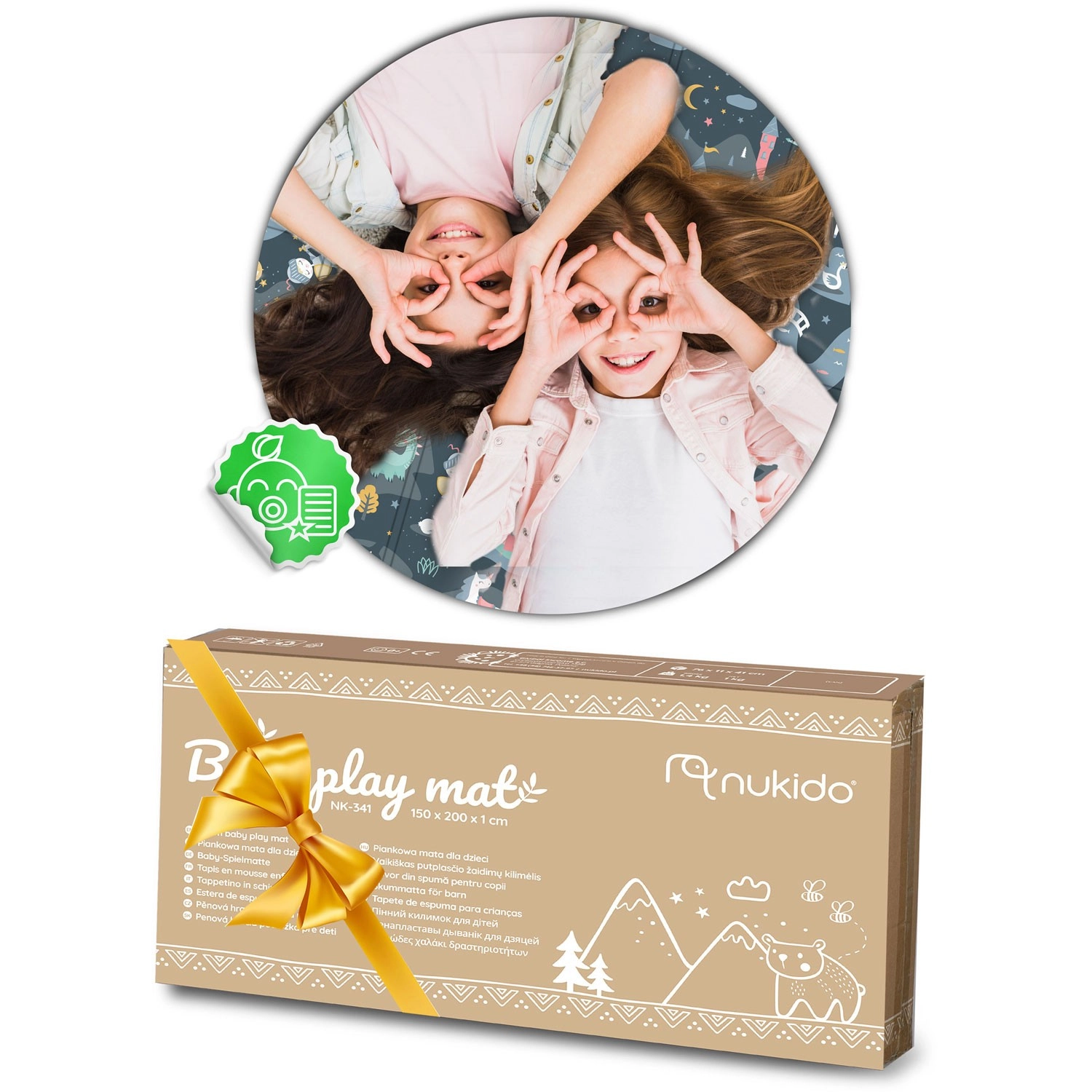 A praktikus, összecsukható NUKIDO gyerek játszószőnyeg 200 × 150 × 1 cm méretben puha ütéscsillapítást, kétoldalas dizájnt varázslatos illusztrációkkal és könnyű tisztítást kínál a mindennapi játékhoz. Vízálló, csúszásgátló, és az XPE habnak köszönhetően BPA-, PVC- és ftalátmentes, így allergiások számára is biztonságos. Gyorsan kompakt formára hajtható, ezért könnyen elrakható vagy magaddal viheted piknikre, tornára vagy utazáshoz.