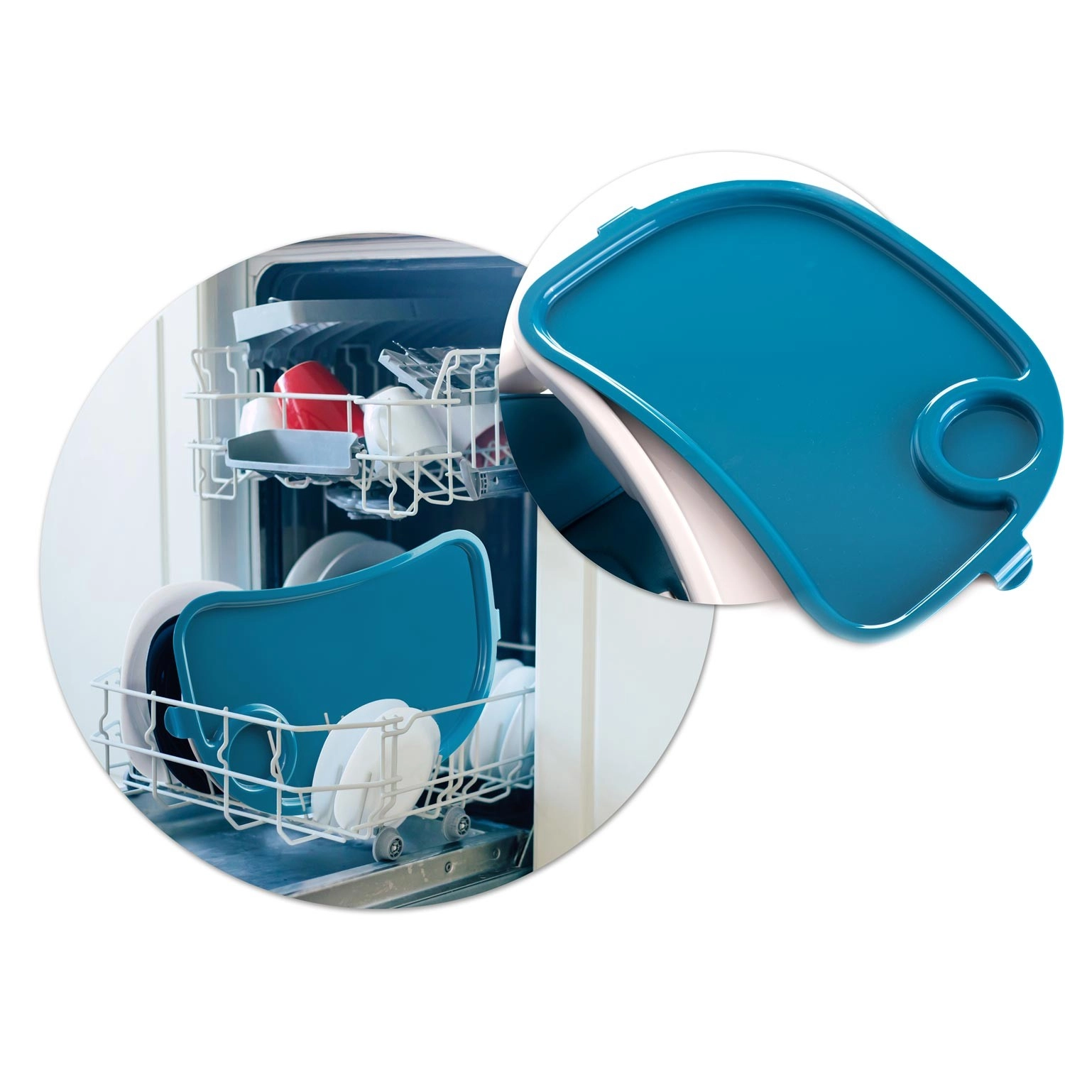A levehető tálca megemelt peremű betéttel megelőzi a kiömlést. A betét mosogatógépben mosható, a teljes tálca folyó víz alatt tisztítható – a rendrakás pillanatok műve.