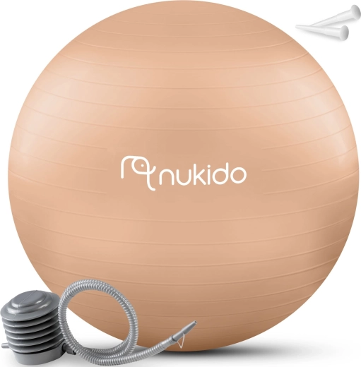 A 65 cm átmérőjű, univerzális NUKIDO terhességi és fitnesz labda ideális tornához, rehabilitációhoz és kényelmes üléshez. Kínál biztonságos Anti-Burst technológiát, csúszásmentes felületet és akár 200 kg teherbírást. A csomagban ingyenes pumpát és pótdugókat találsz az egyszerű otthoni és edzőtermi használathoz.
