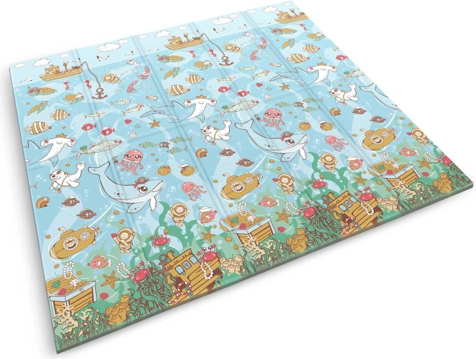 A nagy, összecsukható NUKIDO gyermekszőnyeg 200 × 180 × 1 cm méretben kétoldalas dizájnt kínál (óceán és geometrikus minta), eséscsillapítást az 1 cm vastag XPE habnak köszönhetően, valamint könnyű karbantartást. Vízálló, csúszásgátló, BPA-, PVC-, ftalát- és formamid-mentes, és megfelel az európai biztonsági szabványoknak, beleértve a CE és EN71 tanúsítványokat.