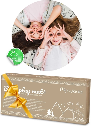 A 200 × 180 × 1 cm méretű, nagy NUKIDO összecsukható szőnyeg puha eséscsillapítást, hideg padlótól való hőszigetelést és kétoldalas ocean–safari dizájnt kínál a szórakozáshoz és tanuláshoz. Vízálló, könnyen tisztítható, csúszásgátló felületű, és biztonságos XPE habból készül BPA, PVC, ftalátok és formamid nélkül. Ideális játékhoz, kúszáshoz, első lépésekhez, tornához és piknikhez.