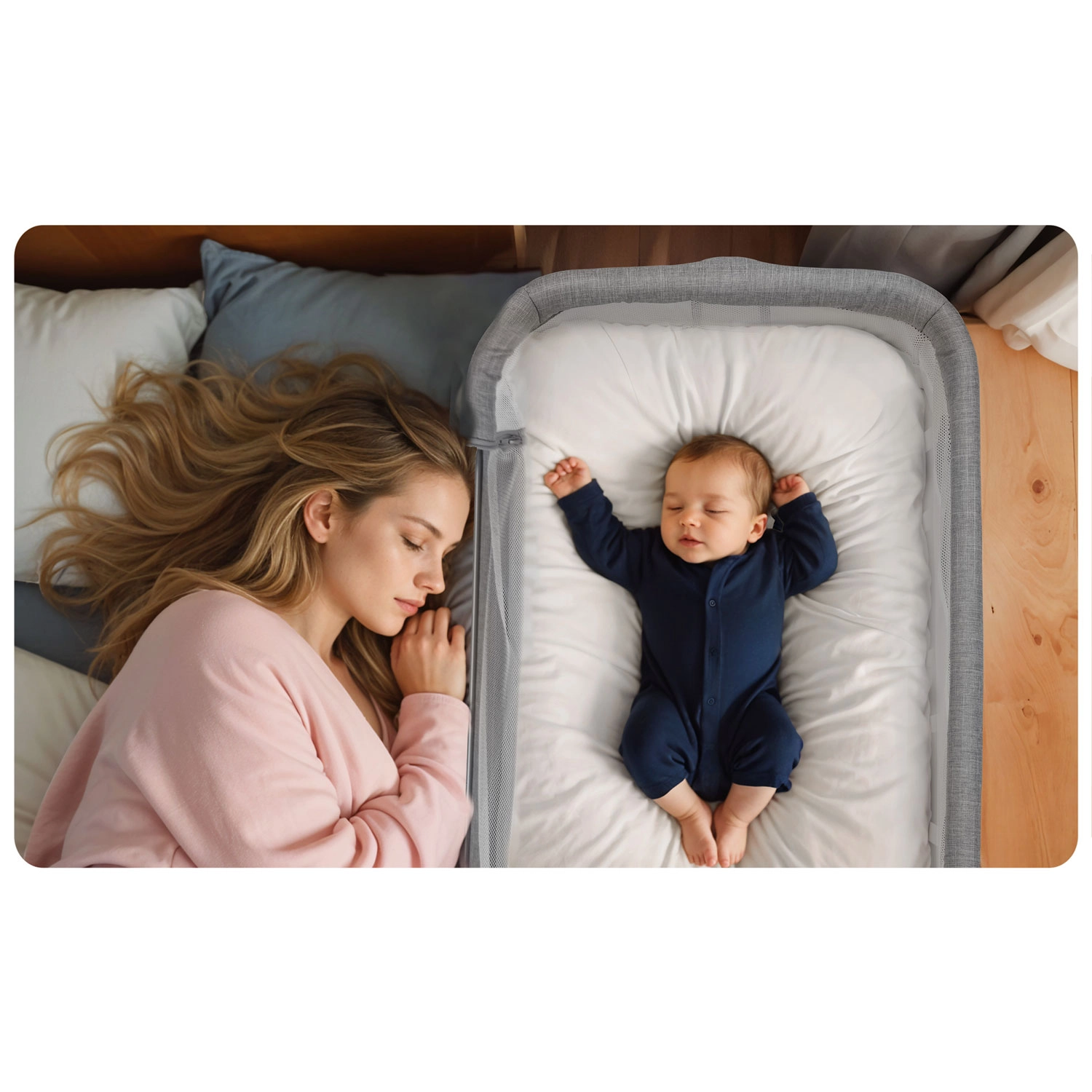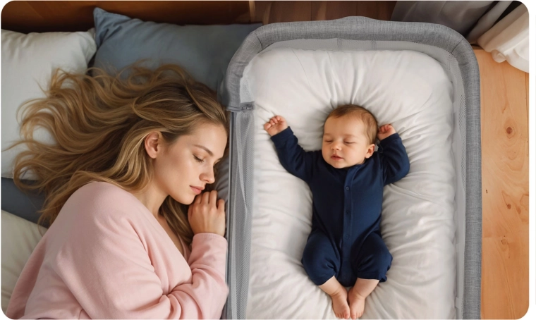 A hálós panelek kiváló szellőzést biztosítanak, és lehetővé teszik, hogy a szülők a babát folyamatosan szem előtt tartsák – nyugodtabb alvás a gyermeknek és önöknek is.