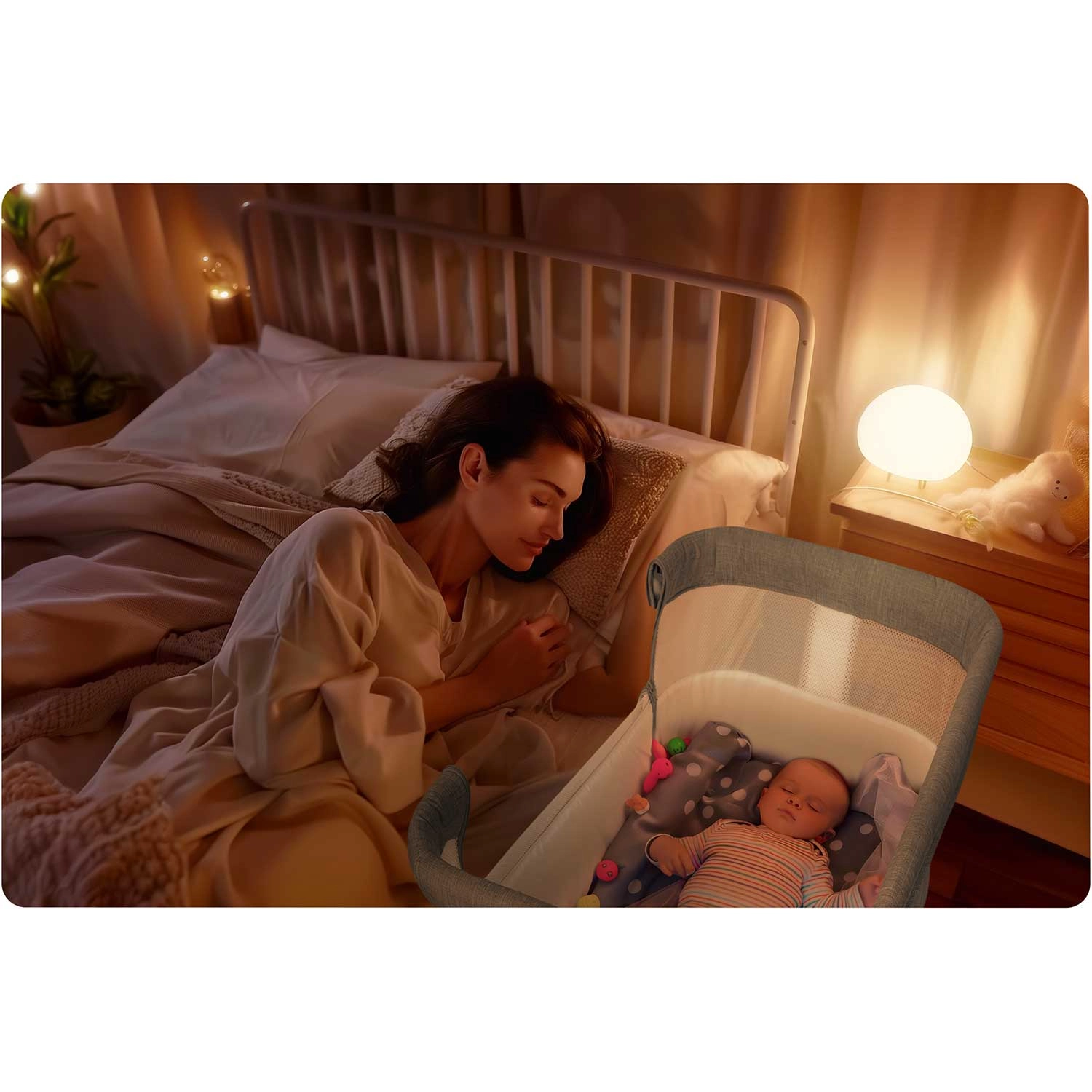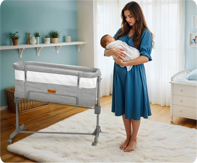 Élvezze a nyugodtabb éjszakákat a NUKIDO hozzátolható kisággyal, amely a kényelmet, biztonságot és funkcionalitást ötvözi. A baba a saját zónájában alszik, mégis karnyújtásnyira marad, ami megkönnyíti a éjszakai etetést és a gyors reagálást a szükségleteire. A légáteresztő hálós oldalfalak kiváló szellőzést és jobb rálátást biztosítanak.