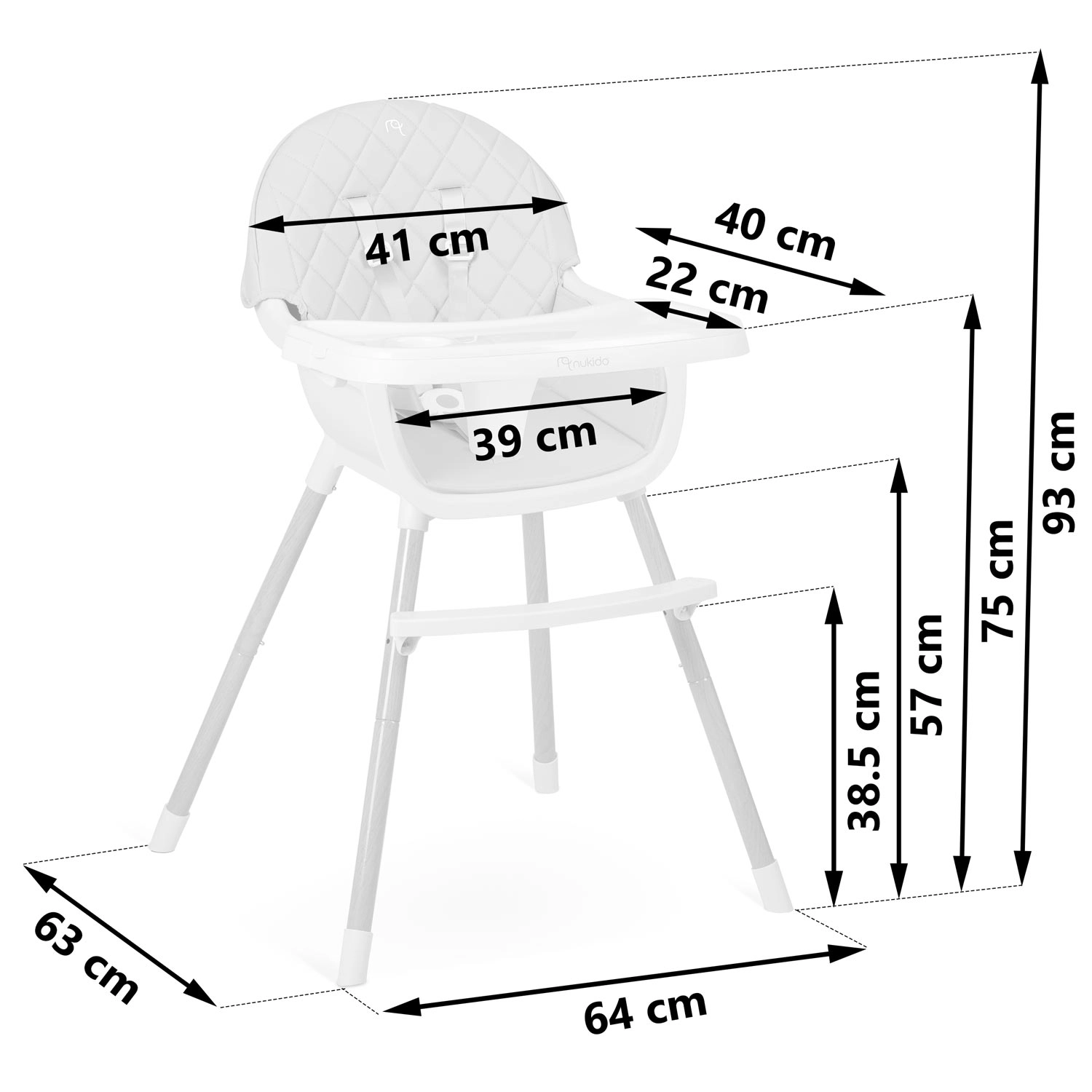 A NUKIDO Lilo egy praktikus 3 az 1-ben etetőszék, amely együtt nő a gyermekkel, és biztonságos, kényelmes ülést biztosít az első hozzátáplálástól a kreatív tevékenységekig. A kivehető betéttel ellátott tálca könnyen tisztítható folyó víz alatt és mosogatógépben is, a puha párnázást elég egyszerűen áttörölni. A fa hatású lábakkal és masszív lábtartóval rendelkező stabil szerkezet mindennapos használat mellett is biztos tartást nyújt.