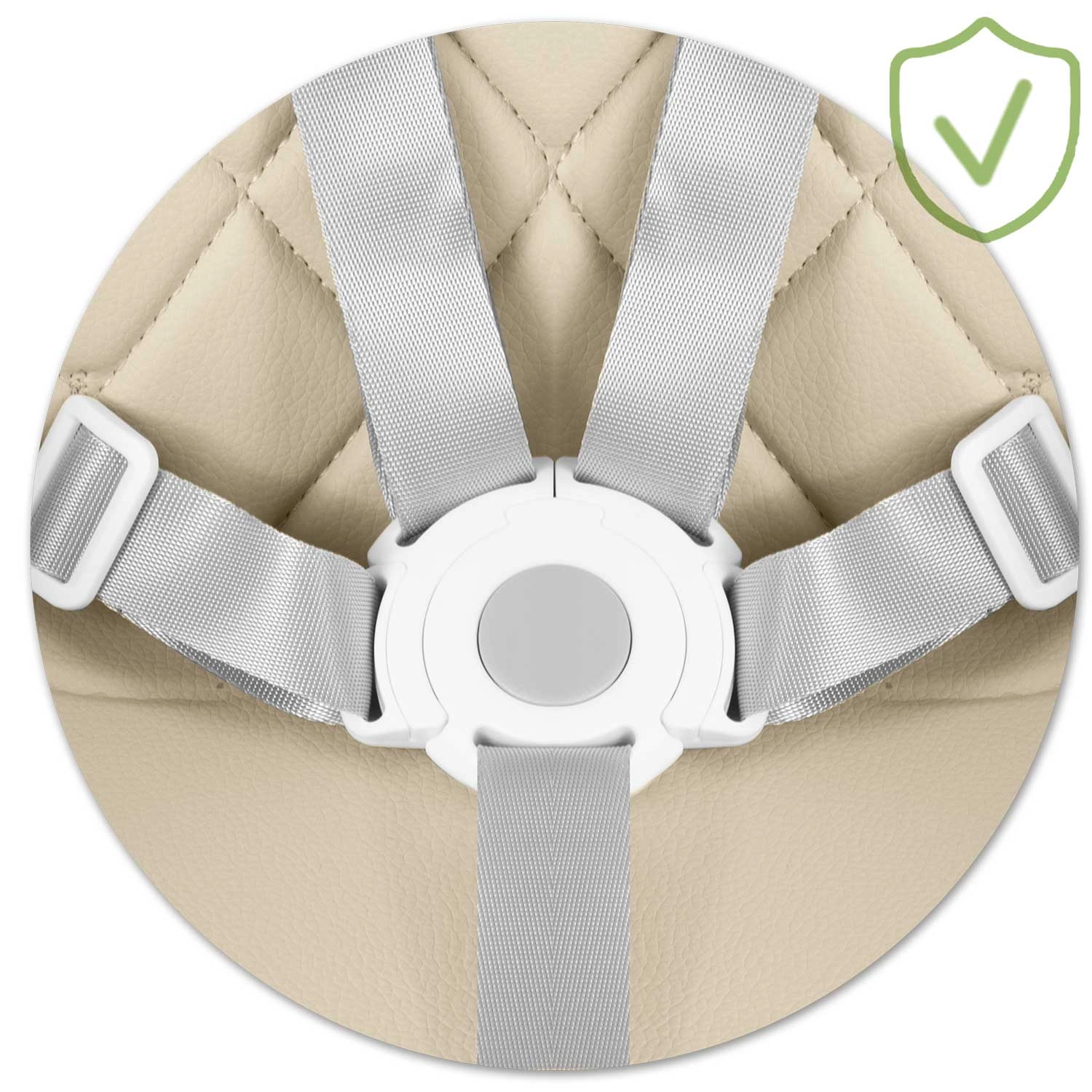 Az állítható, 5 pontos öv biztonságos helyzetben tartja a gyermeket, és megfelel a szigorú EN 14988 szabványnak. Később teljesen eltávolítható.