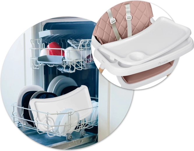 Megbízható 5 pontos övek, stabil lábak csúszásgátló végekkel és masszív szerkezet garantálják a biztonságos ülést étkezés és játék közben is.