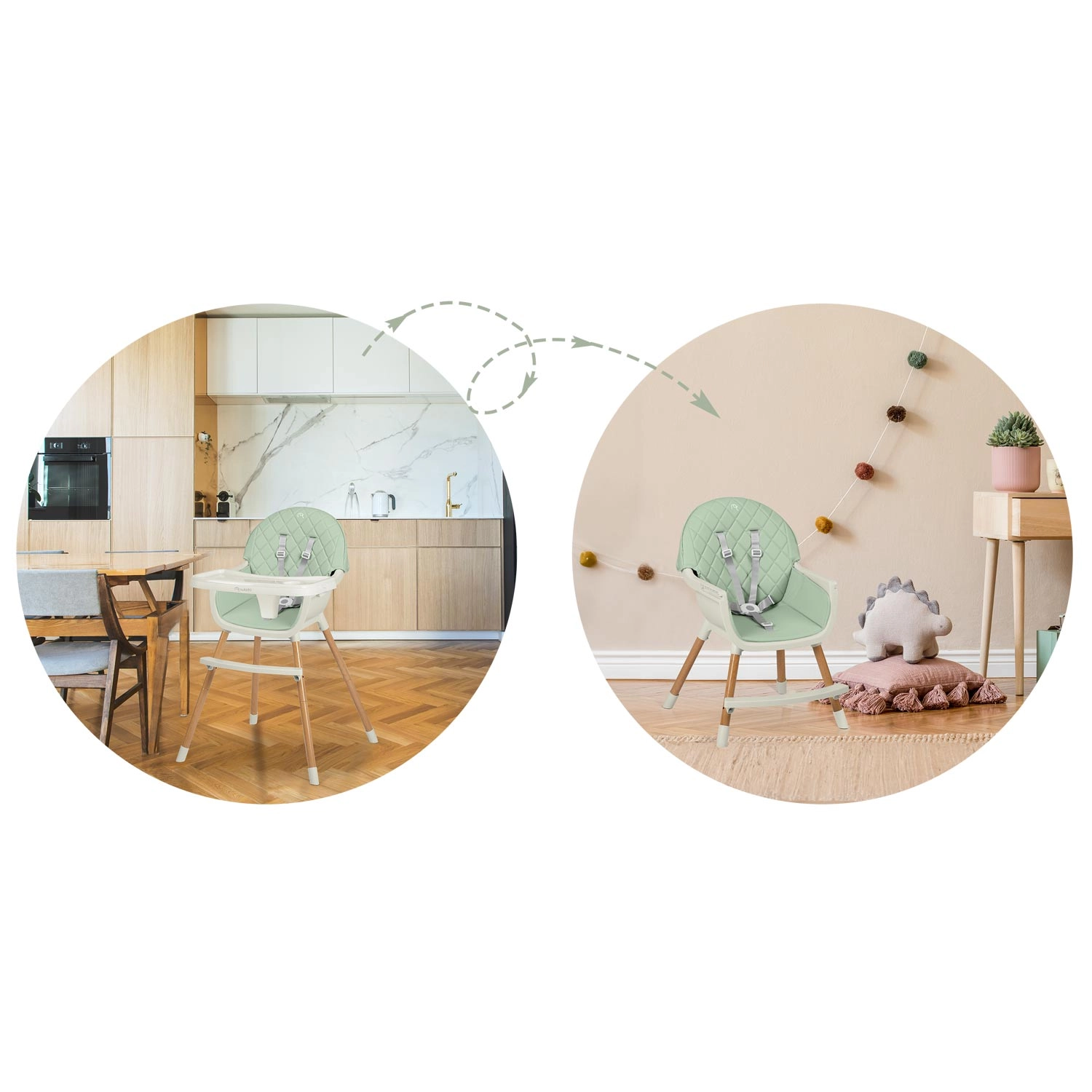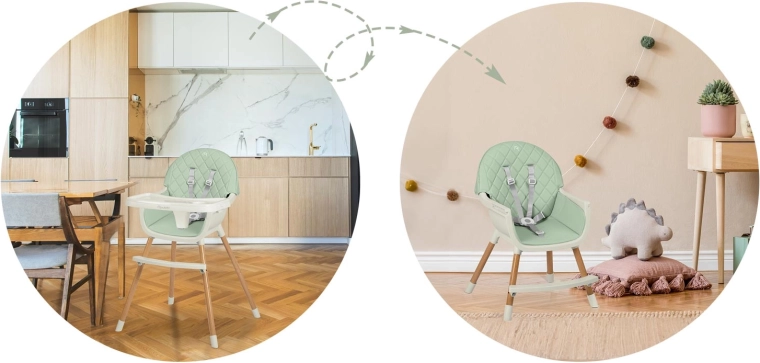 Az átalakítható szerkezetnek köszönhetően használható magas etetőszékként, alacsony fotelkaként, illetve önálló ülésként totyogóknak.