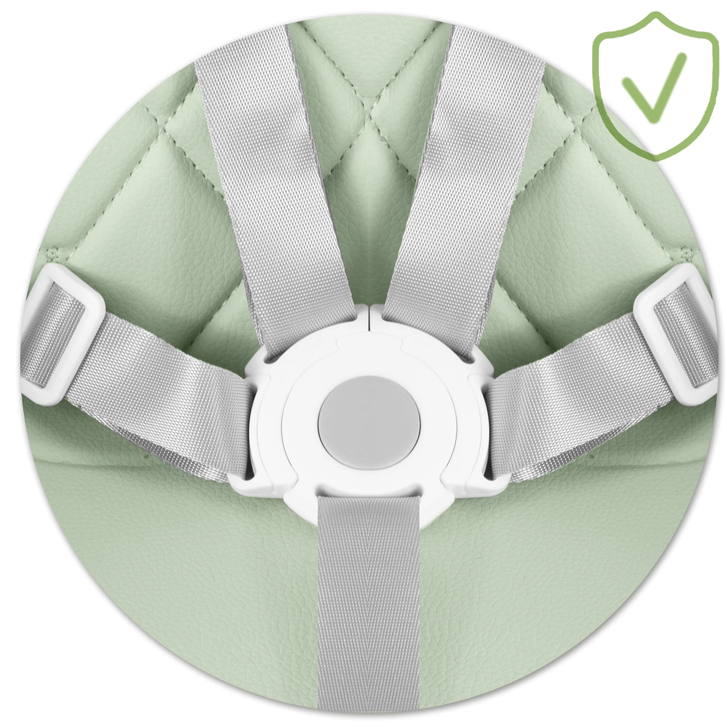 Az ötpontos öv, a stabil lábak csúszásgátló végződései és az EN 14988 szabványnak való megfelelés biztonságban tartják gyermekét.