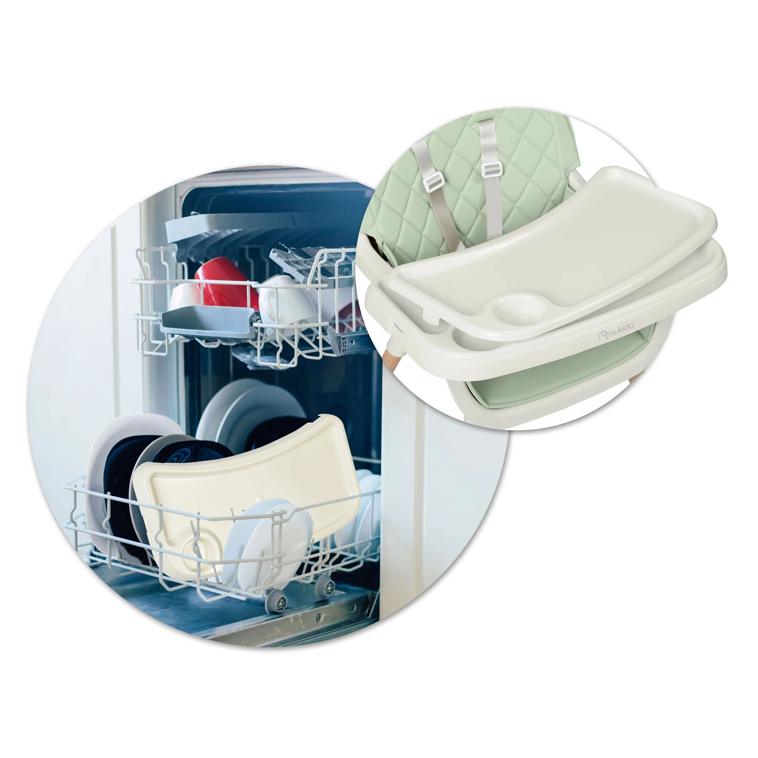 A NUKIDO Lilo sokoldalú és stabil etetőszék, amely együtt nő gyermekével. A 3 az 1-ben rendszer révén könnyen az adott helyzethez igazítható – az asztalhoz való magas széktől egészen a kisgyermekeknek szánt alacsonyabb fotelig. A kényelmes párnázás könnyen lemosható és nem szívja magába a szennyeződéseket, így az étkezés utáni rendrakás pillanatok műve.
