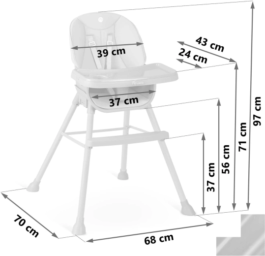 • 3 az 1-ben használat: magas szék / alacsony szék tálcával / gyerekszék