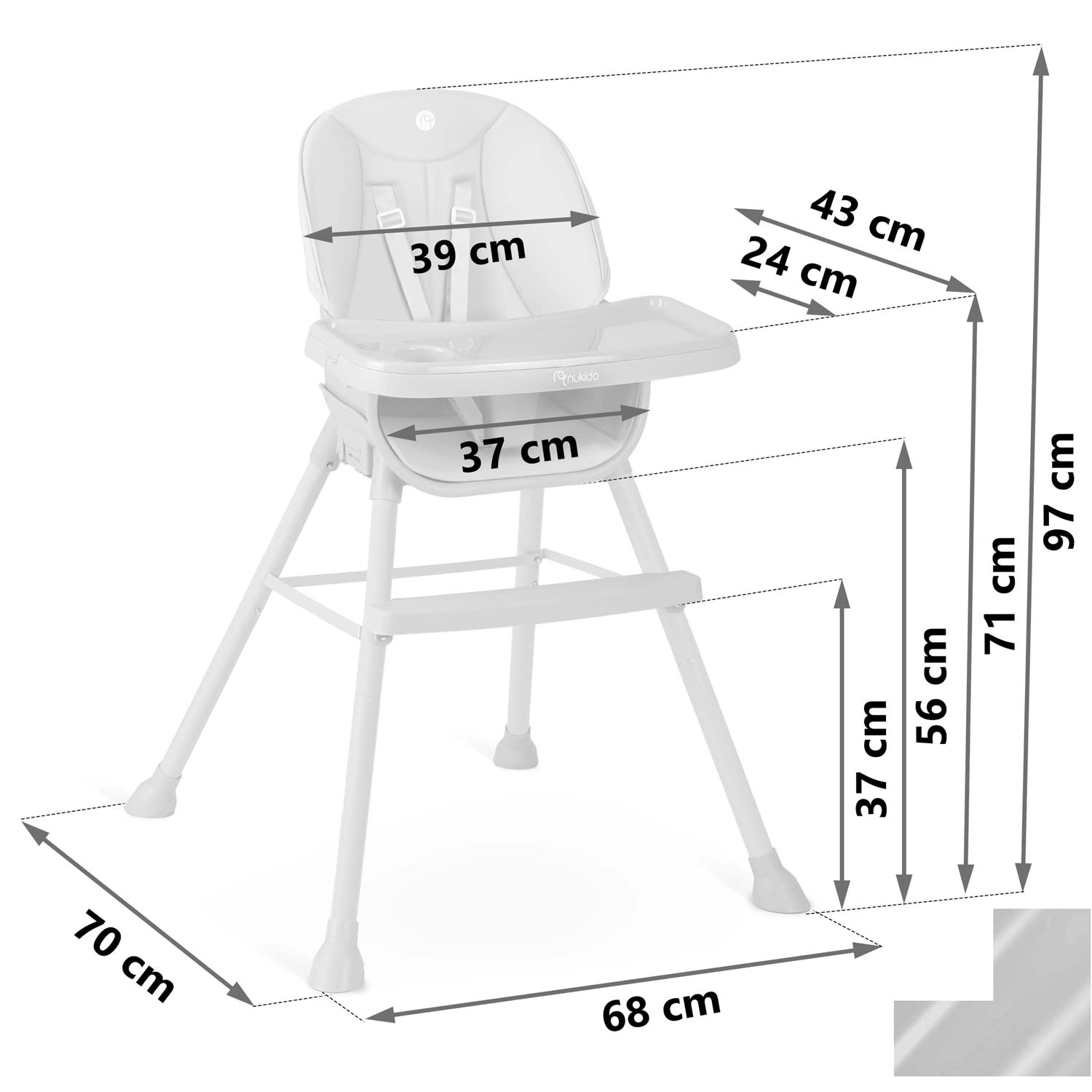A praktikus és stílusos NUKIDO Tilo 3 az 1-ben gyerek etetőszék együtt nő a gyermekkel – az első hozzátáplálástól az önálló étkezésig és játékig. Állítható és levehető tálcát kínál megemelt peremmel és betéttel, könnyen tisztítható anyagokat, 5 pontos biztonsági övet és stabil lábakat csúszásgátló végekkel. Ideális etetéshez, rajzoláshoz és olvasáshoz – biztonságosan, kényelmesen és pillanatok alatt tisztán.