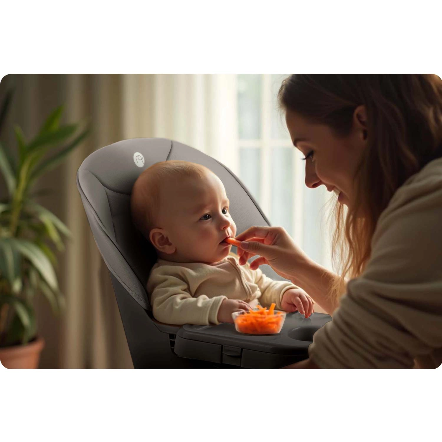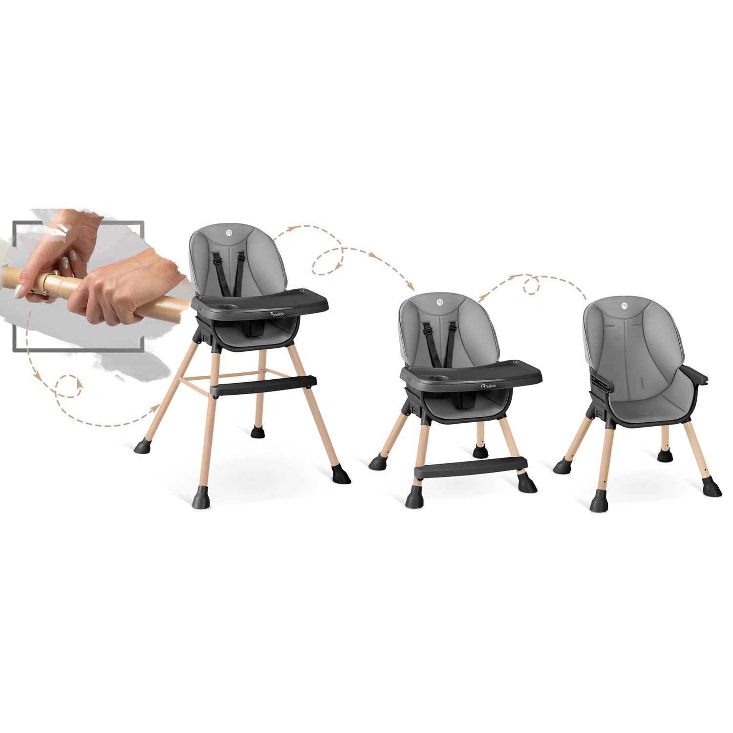 Váltson a magas etetőszék, az alacsony szék tálcával és az önálló gyerekszék között játékhoz és olvasáshoz. Ideális az első hozzátáplálástól a kisgyermekkorig.