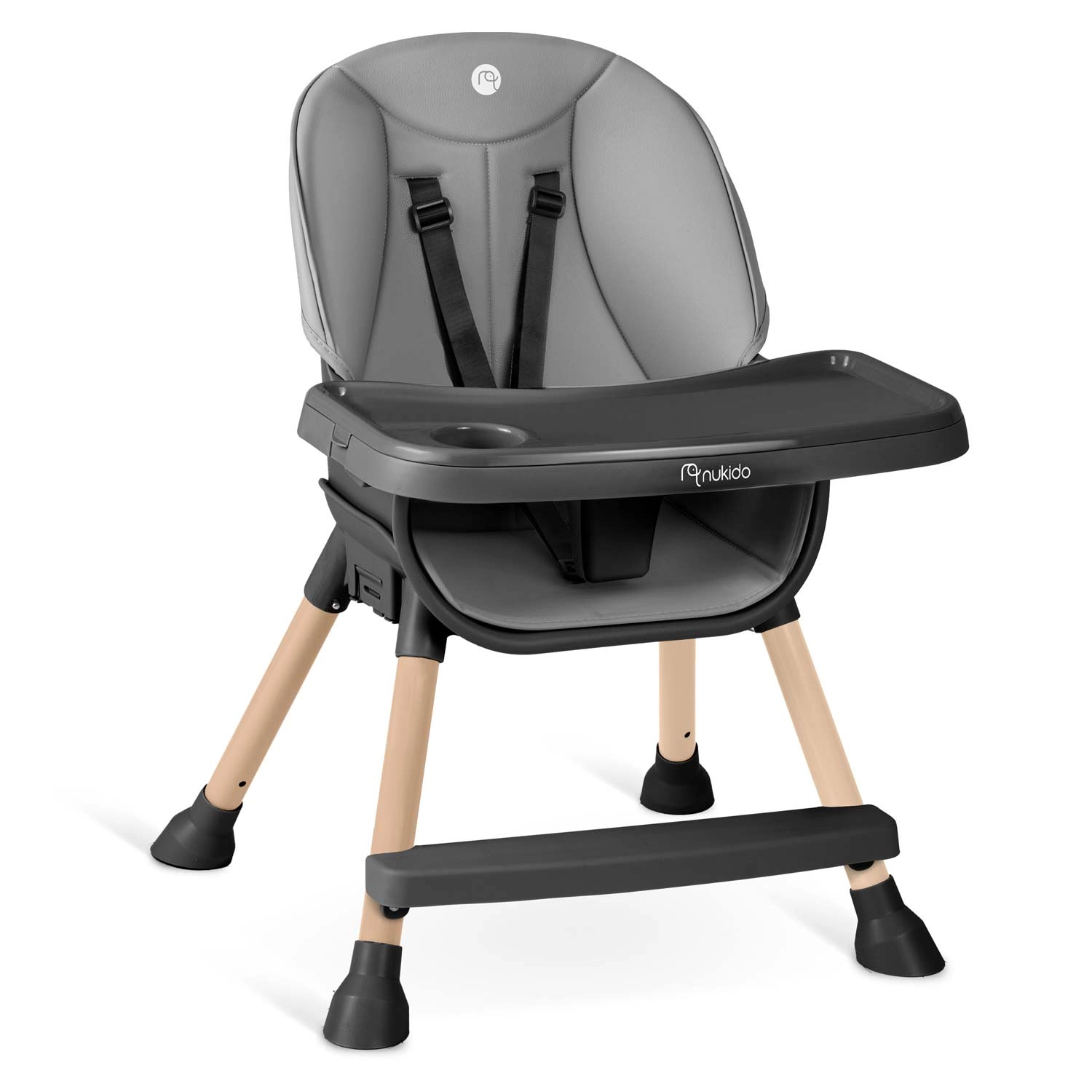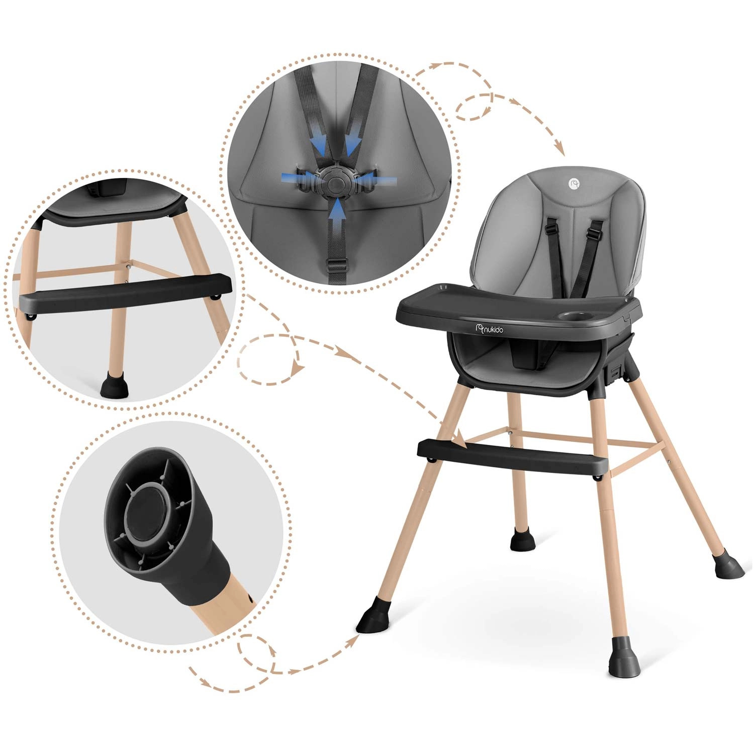 A NUKIDO Tilo sokoldalú 3 az 1-ben gyerek szék, amelyet könnyen az aktuális igényekhez igazíthat: magas etetőszékként, alacsony székként tálcával, vagy önálló gyerekszékként játékhoz. Az ergonomikusan formált ülés segíti a helyes testtartást, míg a fa hatású, masszív lábak csúszásgátló talpakkal szilárd stabilitást biztosítanak bármilyen felületen.