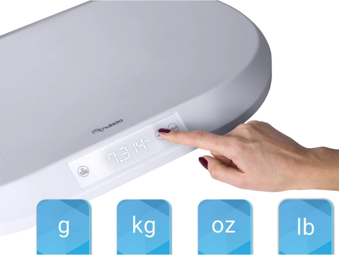 Gondoskodjon babája egészséges fejlődéséről egy mérleggel, amely a legkisebb változásokat is rögzíti. A 0,005 kg-os pontosság lehetővé teszi a gyarapodás grammra pontos követését – ideális újszülöttek, koraszülöttek és fokozott felügyeletet igénylő gyermekek számára. A HOLD funkció stabil értéket tart, amikor a gyermek mocorog, a TARE pedig egyetlen gombnyomással levonja a pelenka vagy az alátét súlyát.