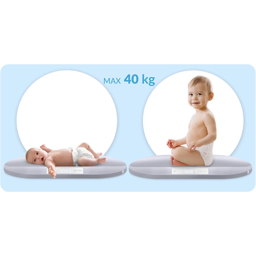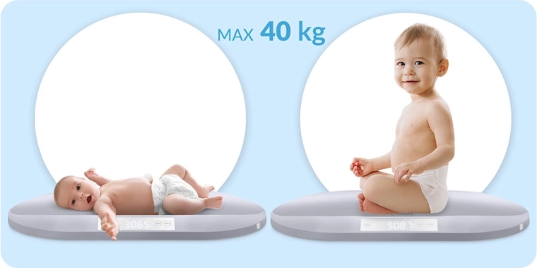A 40 kg-os maximális teherbírásnak köszönhetően a mérleg éveken át kiszolgálja gyermekét, és segít a testsúly ellenőrzésében csecsemőkortól egészen iskolás korig. A nagy, jól olvasható LCD kijelző, az ergonomikusan formált felület és a választható mértékegységek (g, kg, oz, lb) kényelmessé teszik minden egyes mérést. A csomag része egy 150 cm-es mérőszalag is a fejkörfogat és egyéb méretek méréséhez – minden centiméter számít.